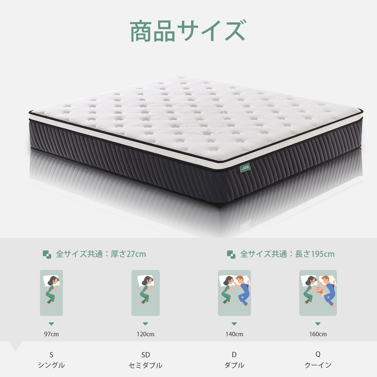 【厚さ27cmで優れたサポート】体を適切にサポートする必要があります。体のサポートを不十分にすると、腰痛、肩こり、身体の痛みなどの健康上の問題を引き起こす可能性があります。マットレスの硬さや柔らかさは、寝心地だけでなく、サポート性にも影響を与えます。
