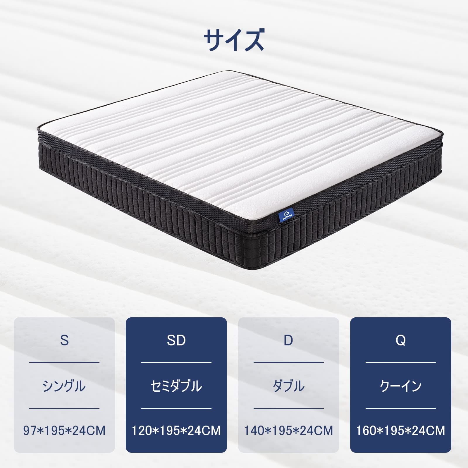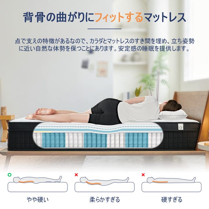 【心地よい眠りに導く】サイズ:幅160cm×奥行195cm×高さ24cmマットレスは人体によって、独立構造で身体の体圧分散できて、点で体のバランスをよく支え、自然な寝姿勢を保つ。ニット生地は肌に優しい、通気性が良い、やわらかく滑らかで、とても気持ちが良く安心してお使いいただけます。睡眠の質を上げたい方や仕事などのストレスが気になる方におすすめ。