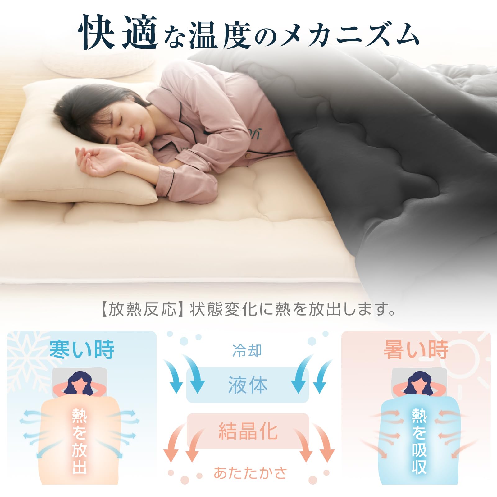 特徴 抗菌防臭, 洗える, 軽量/ピーチスキン加工, 通気/縫製穴からの綿抜けを防止するために、中綿と生地の間に不織布を入れています, 防ダニ/SEK認証