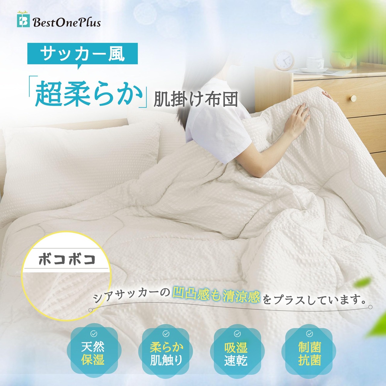 【特価セール】BestOnePlus 掛け布団 シングル 『帝人フレッシュコールZ&0秒瞬間消臭シート』 肌掛け布団 光触媒加工 シアサッカー風 ポコポコ 椿油保湿 静電気防止 体にフィット 保温 軽くて暖かい 柔らかな肌触り 速乾 アレルギー対策 ダニ防止 抗菌 防臭 洗える 通気性 耐久性 色褪せない ふわふわ オールシーズン ストライプ 140X200CM アイボリー | asaRulu0511