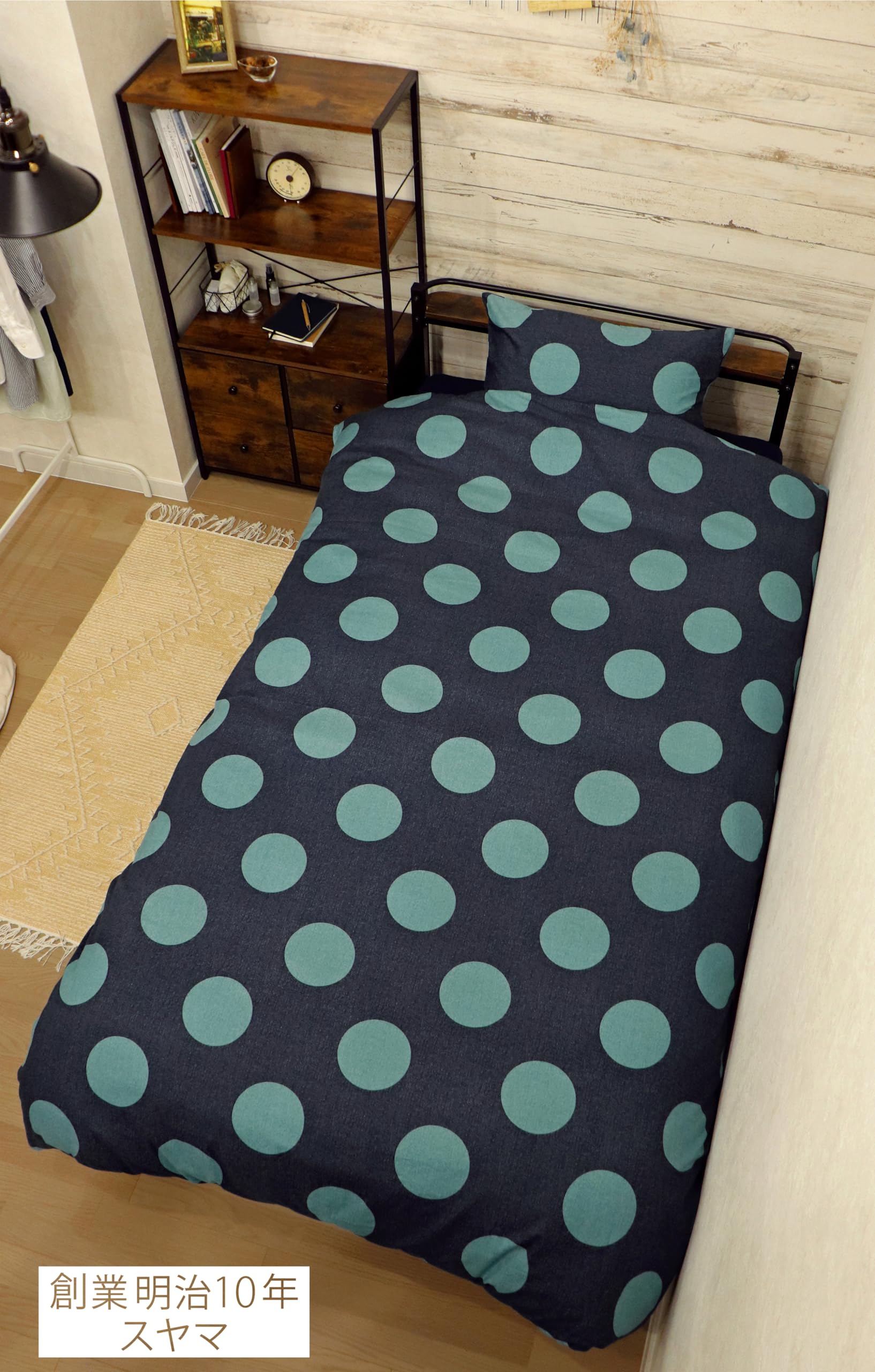 【2022最新】CAMEL PALMS 日本製 綿100% 掛布団カバー シングル 150×210cm 着脱簡単テープ付スナップ 片面抗菌防臭加工 デニム調 水玉柄 ネイビー