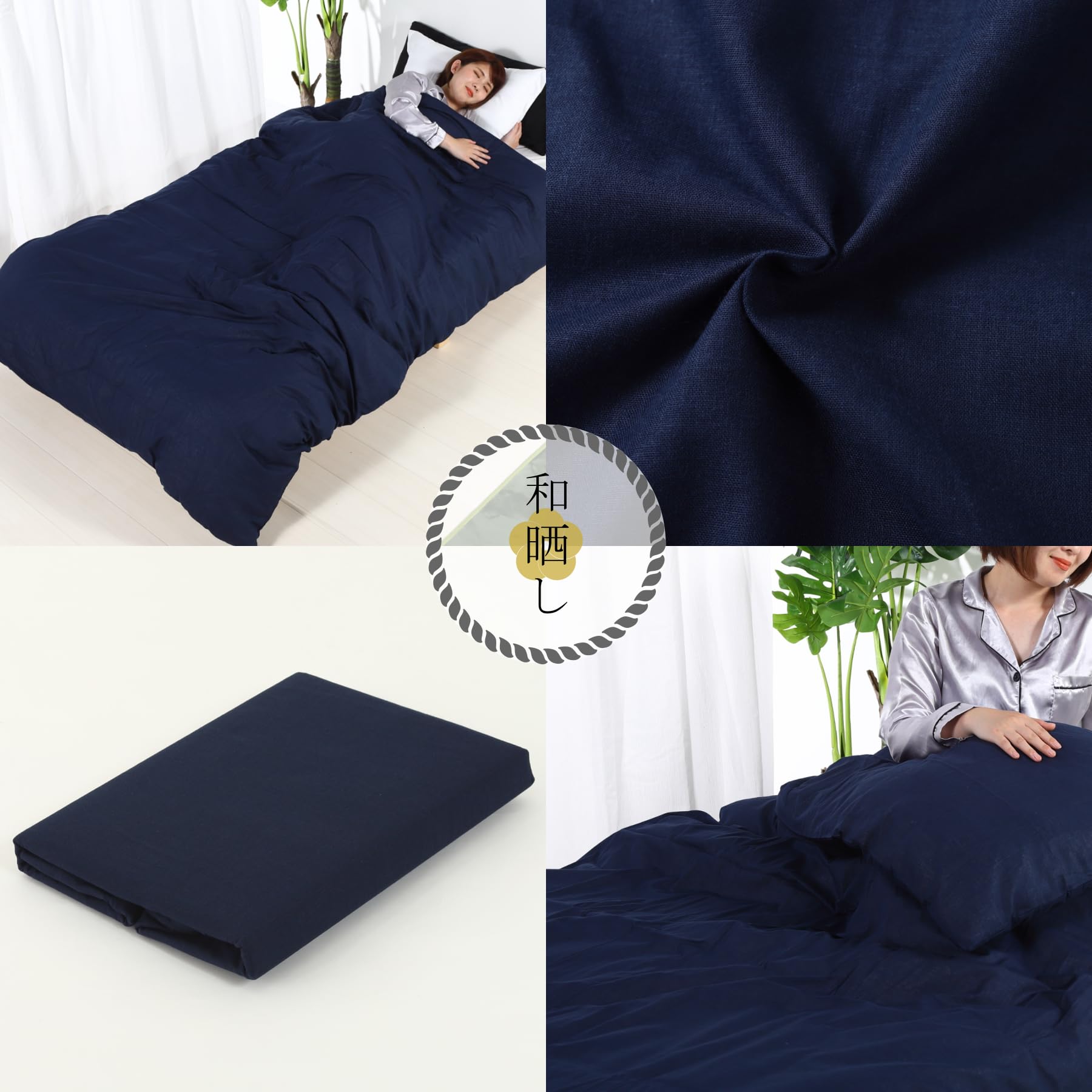 日本製 掛け布団カバー 綿100% 和晒し ガーゼ シングルロングサイズ 150cmX210cm ネイビー シングル 肌掛け布団カバー 布団カバー 綿100 綿 国産 日本産 シングルロング 毛布カバー 無地 軽い 軽量 450g やわらか