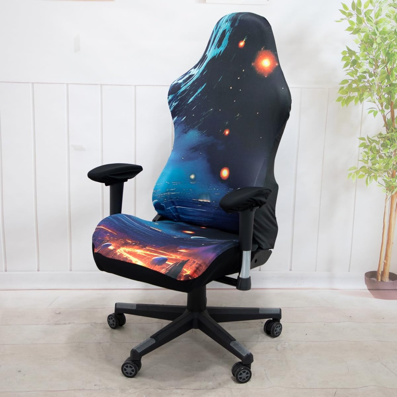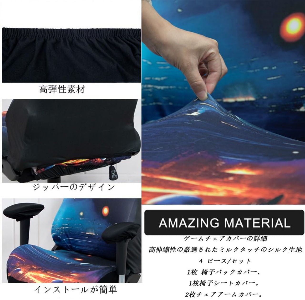 ゲームチェアカバー アームレストカバー付きストレッチゲーミングチェアシートカバー 事務椅子 洗える 着脱可能