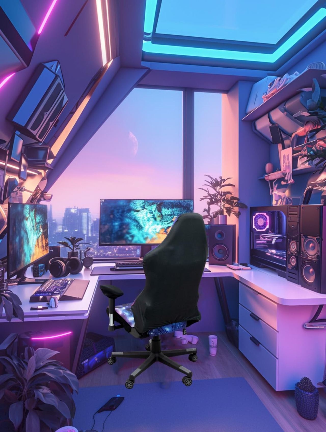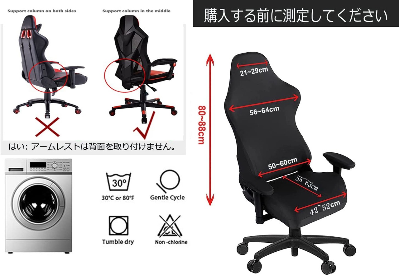 ゲームチェアカバー アームレストカバー付きストレッチゲーミングチェアシートカバー 事務椅子 洗える 着脱可能 (01)…