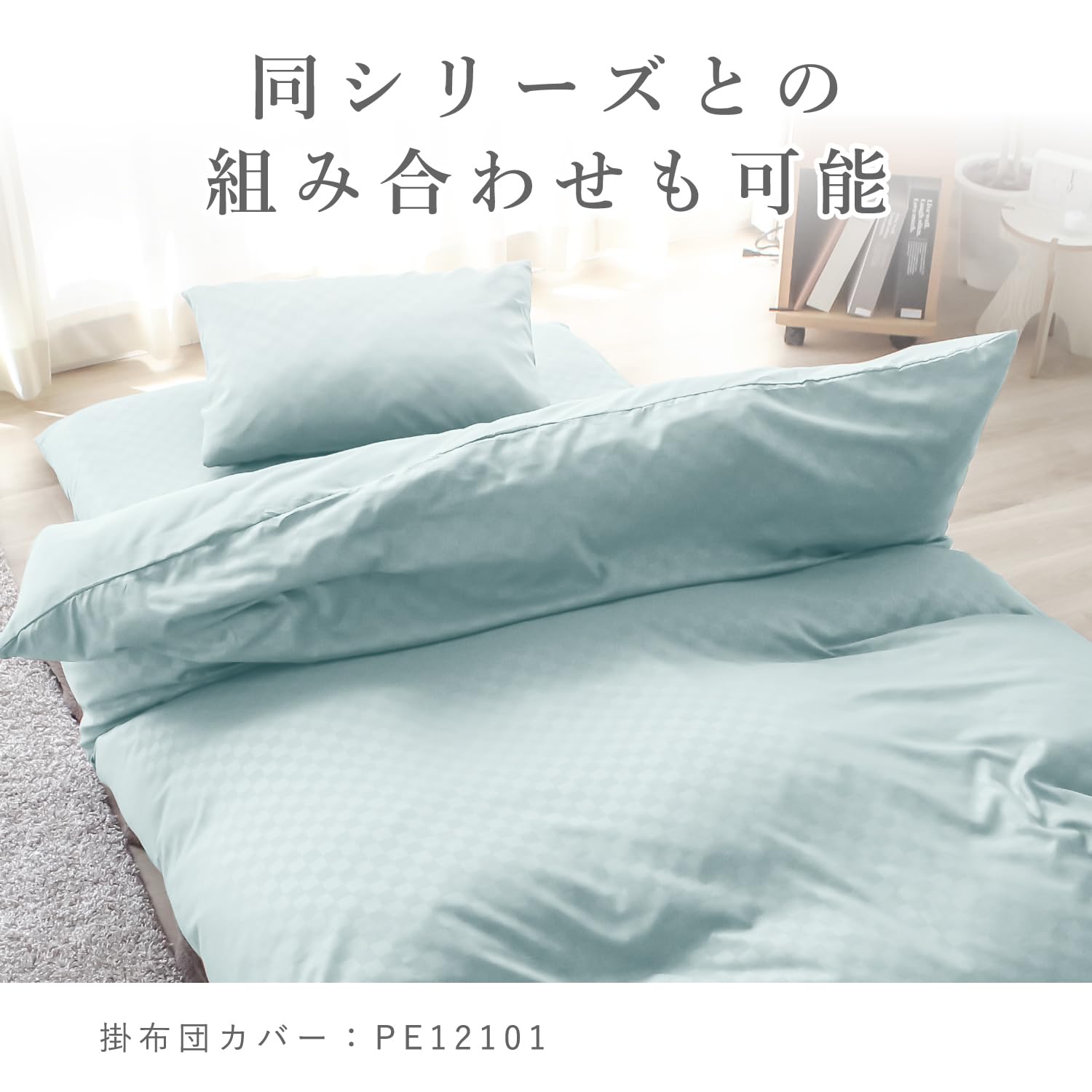 光の加減で市松柄が現れるモダンテイストの布団カバー。一見、無地のカバーにも見える柄が和洋室どちらの部屋にも合わせやすくなっています。