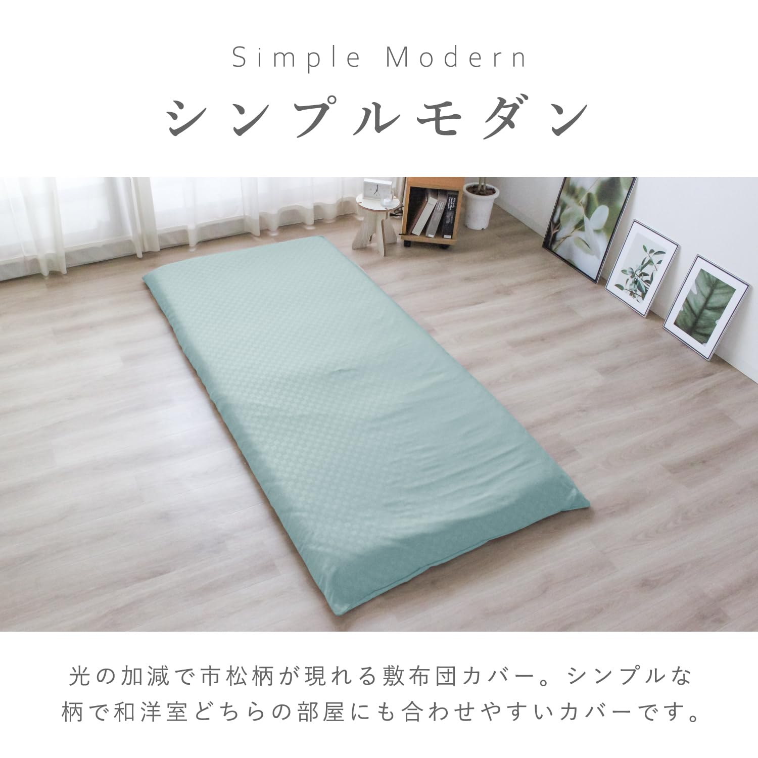 【数量限定】メリーナイト 敷き布団カバー 市松柄 エメラルドグリーン シングルロング 約105×215cm 光沢感 和モダン 速乾 シワになりにくい 洗える PE13101-53