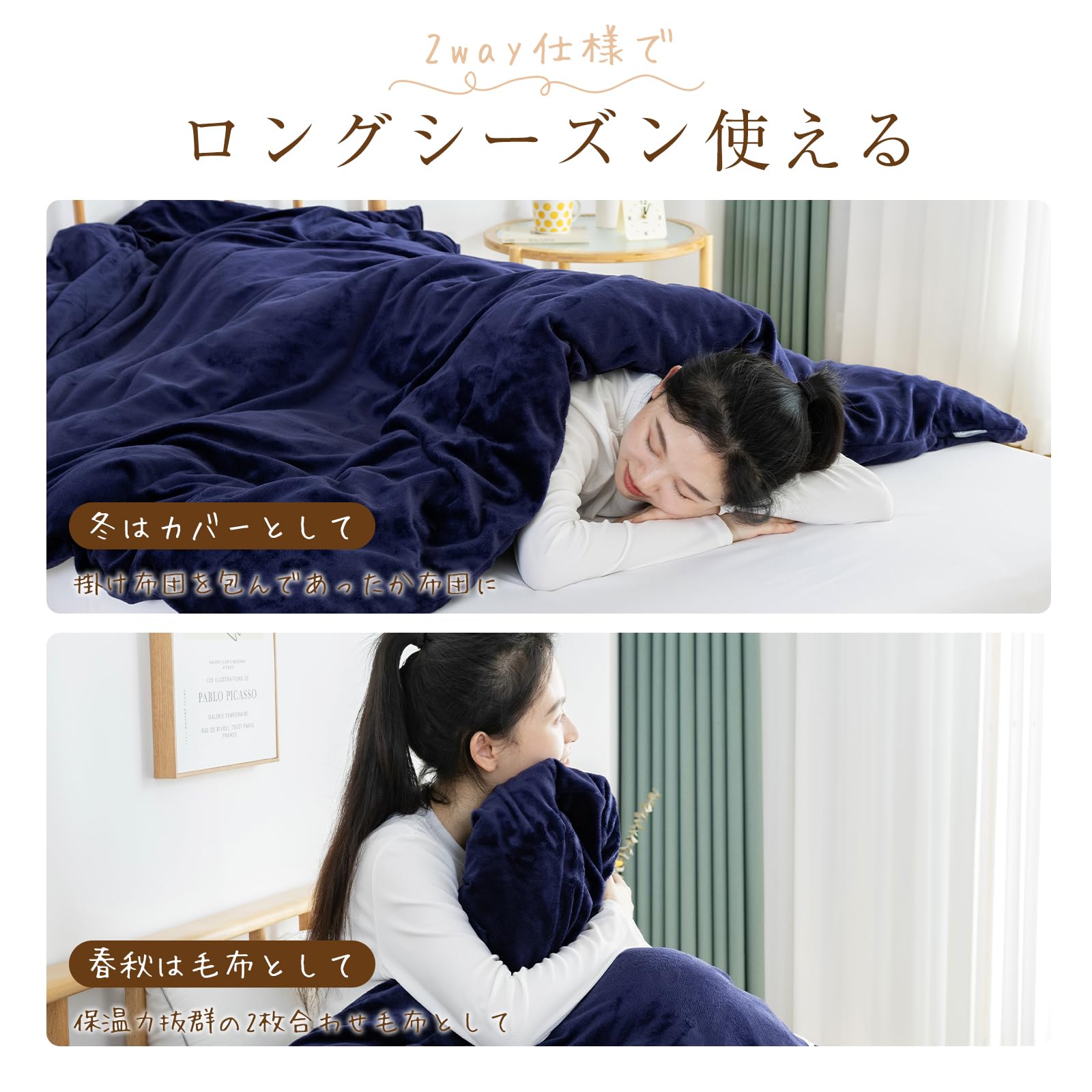 Matdeco 掛け布団カバー セミダブル 冬 あったか 羽毛布団・毛布カバー フランネル 蓄熱保温 厚手 極細マイクロファイバー 毛布にもなる掛け布団カバー 静電気防止 抗菌防臭 蓄熱保温 洗える 速乾 スナップボタン8箇所&ダブルファスナー 着脱簡単 丸洗いOK (セミダブル・170X210cm ネイビー)