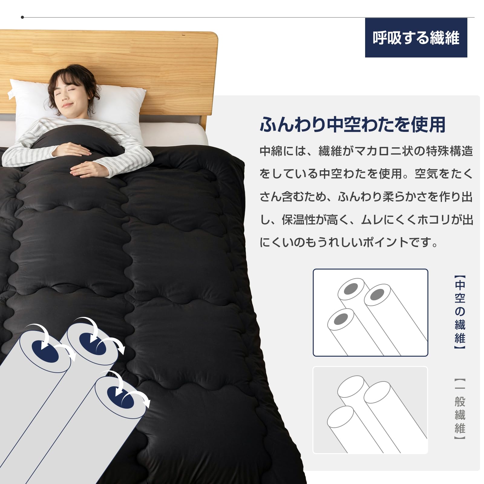 Matdeco 掛け布団 ダブル オールシーズン かけ布団 洗える SEK衛生認証 抗菌防臭 防ダニ 肌布団 吸水速乾 暖かい 掛けふとん 軽量 春夏秋用 約1.2KG 無地 190x210cm ブラック(12グリッド)