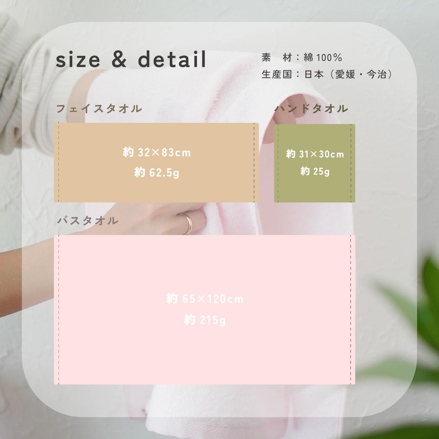 素材:綿100% サイズ:約65cm×120cm 重さ:約215g(1枚あたり) 原産国:日本(今治)