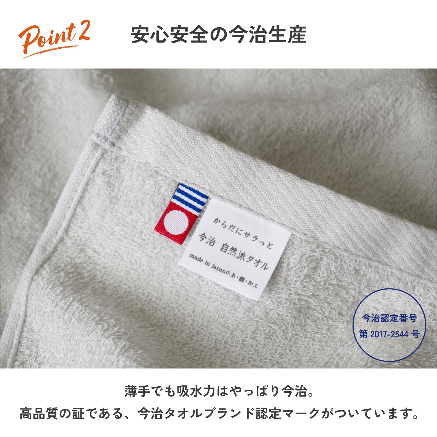 今治タオルと想像するとその薄さにびっくりするかもしれませんが、吸水性はバッチリ。厚いタオルが苦手な人や嵩張らない今治タオルが欲しい人にぜひ使ってみて欲しい商品です。