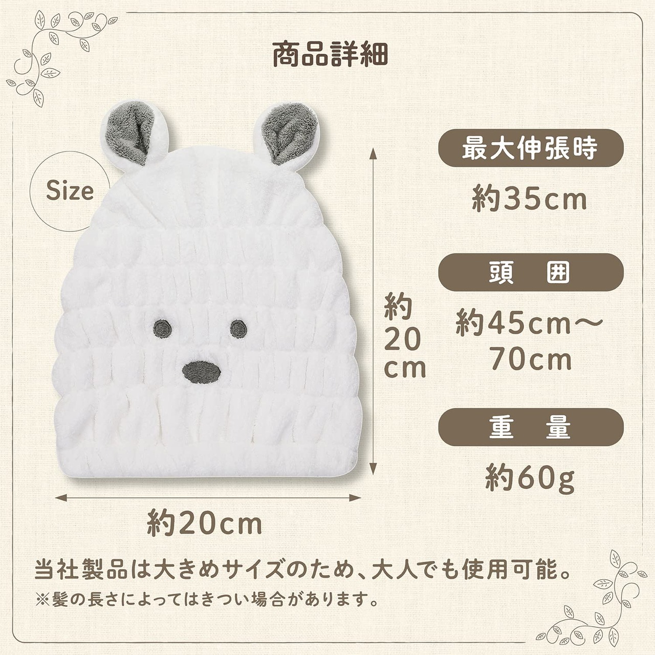 【特価セール】タオルキャップ 子供 一般的なタオルキャップの5倍の高い吸水率 キッズキャップ 吸水 マイクロファイバー ヘアキャップ ヘアドライタオル OSHAMY (しろくま)