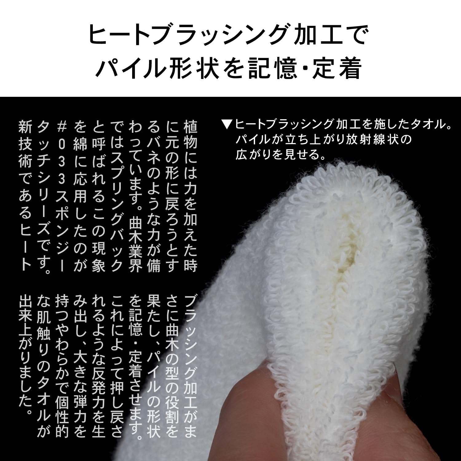 【パイル形状を記憶・定着】曲木業界では「スプリングバック」と呼ばれる、植物が元の形に戻ろうとする力を綿タオルに採用した唯一のタオル。ヒートブラッシング加工技術によってパイルの形状記憶を実現。押し返すような反発力を持つ個性的なタオルが誕生しました。