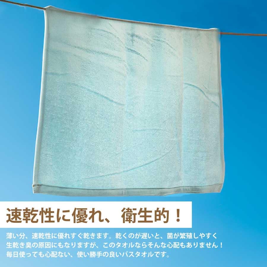 【吸水性と速乾性に優れた薄手タイプ】 吸水力抜群で、体を拭いた瞬間に水分をしっかりキャッチ。さらに、速乾性にも優れているので、生乾きの原因となる菌が繁殖しにくいので衛生的!