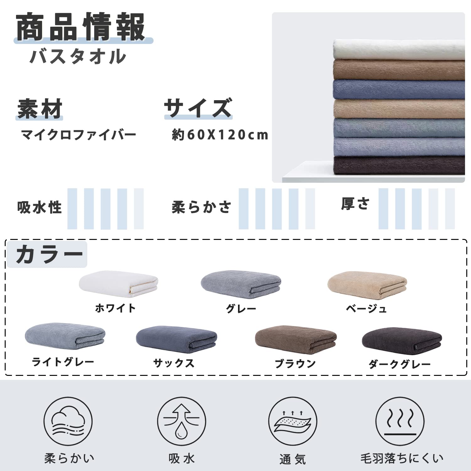 バスタオル マイクロファイバー 大判 60X120cm ホテル仕様 タオル ふわふわ 吸水 速乾 耐久性 5枚セット (ホワイト)
