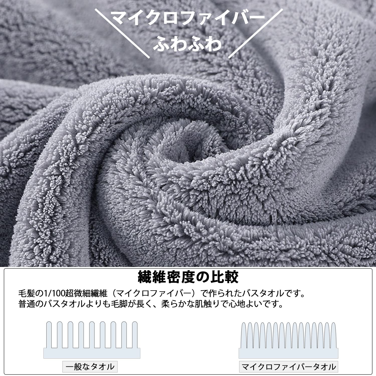 【優しい肌触り】毛髪の1/100極細繊維(マイクロファイバー)で作られたバスタオルです。触り心地よい、やわらかく繊細な肌ざわりを実感していただけます。やさしい仕上げに蛍光染料は使用しないで、安心に使いできます。