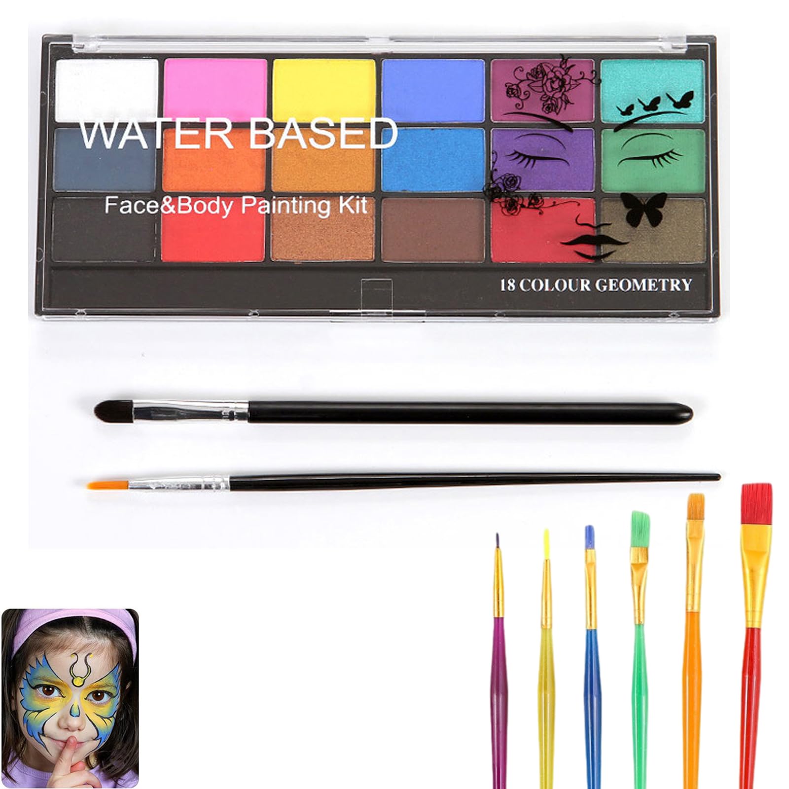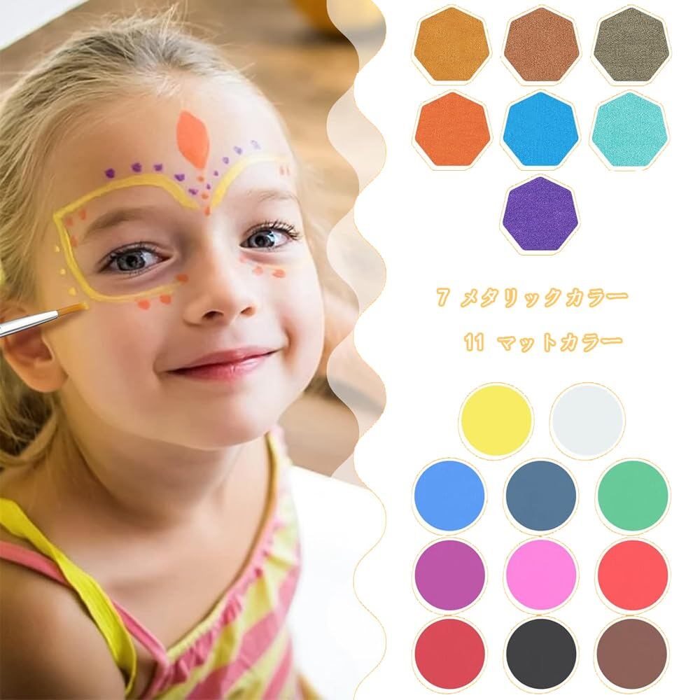 Phyxiul フェイスペイント 18色 セット ボディペイント 絵の具 プロ用子供用フェースペイント 敏感肌にも適応 コスプレ 小道具 仮装 安全 絵具 ハロウィン クリスマス ーのメイクに最適