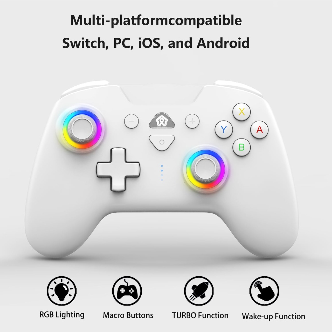 Switch コントローラー 自動連射機能 背面ボタン付き マクロ機能 Bluetooth接続 6軸ジャイロセンサー 7色RGBライト 1000mAhバッテリー 長時間使用 4段階HD振動 Switch1/Switch2/Android/PC(有線)/iOSに対応 日本語取扱説明書付き PeriphX スイッチ プロコン 全機能搭載 洗練されたデザイン かわいい配色