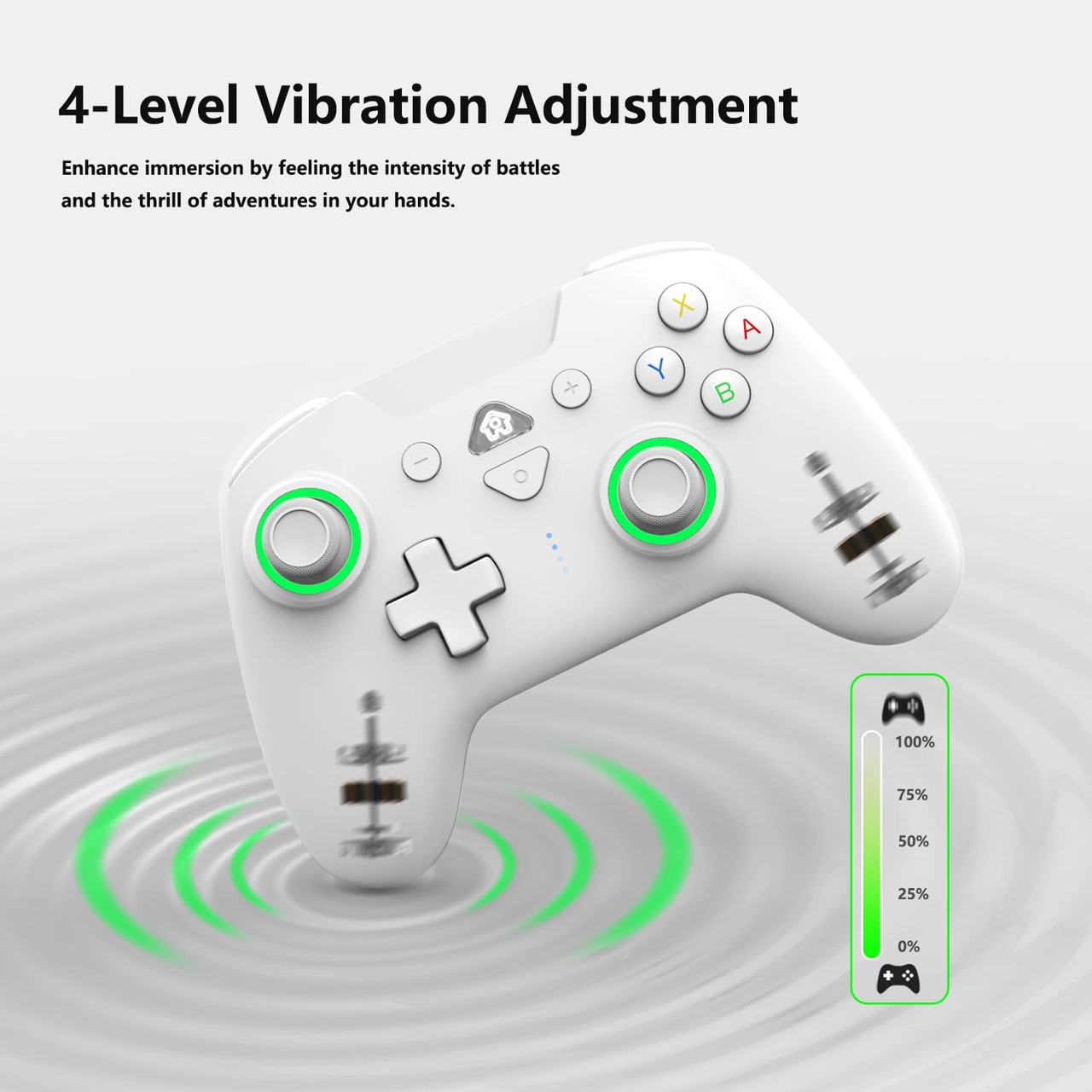 【TURBO自動連射機能と4段階HD振動】TURBO連射機能を搭載し、ゲームのニーズに応じて連射頻度(5回/秒→12回/秒→20回/秒)を設定できます。自動連射機能を使用すれば、ボタンを一度押すだけで20倍の攻撃力を発揮し、勝率をアップ!さらに、4段階の振動調整機能(0%/30%/70%/100%)を提供し、よりリアルなゲーム体験を実現し、よりリアルな衝突や振動を体感することができます。