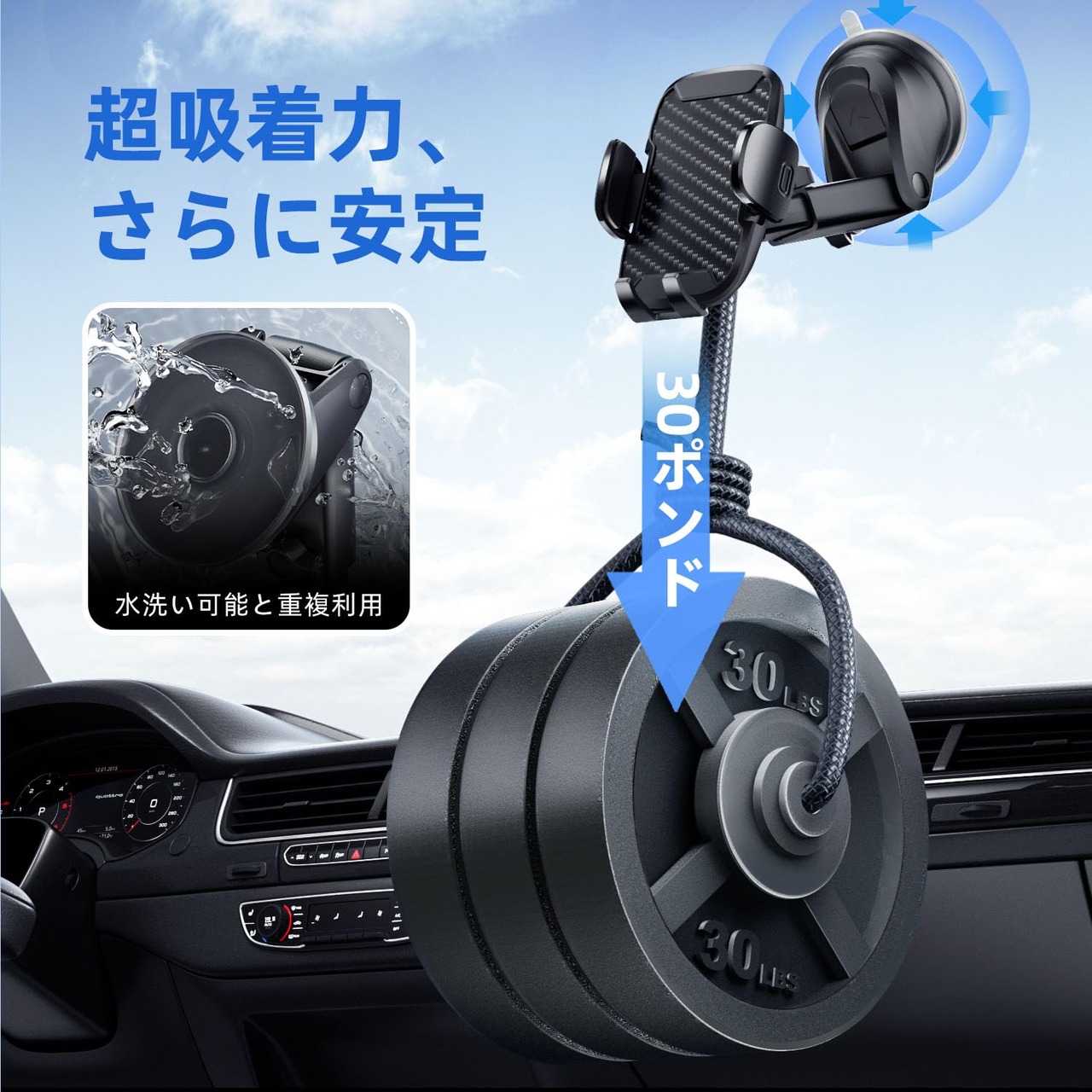 「多機能を搭載する車載スマホホルダー」車載スマホホルダーは粘着性に強い吸盤と吹き出し口のクリップに備え、それをダッシュボード、フロントガラスか吹き出し口に簡単に取り付けさせる同時に運転中に極めの便利さをもらいます。