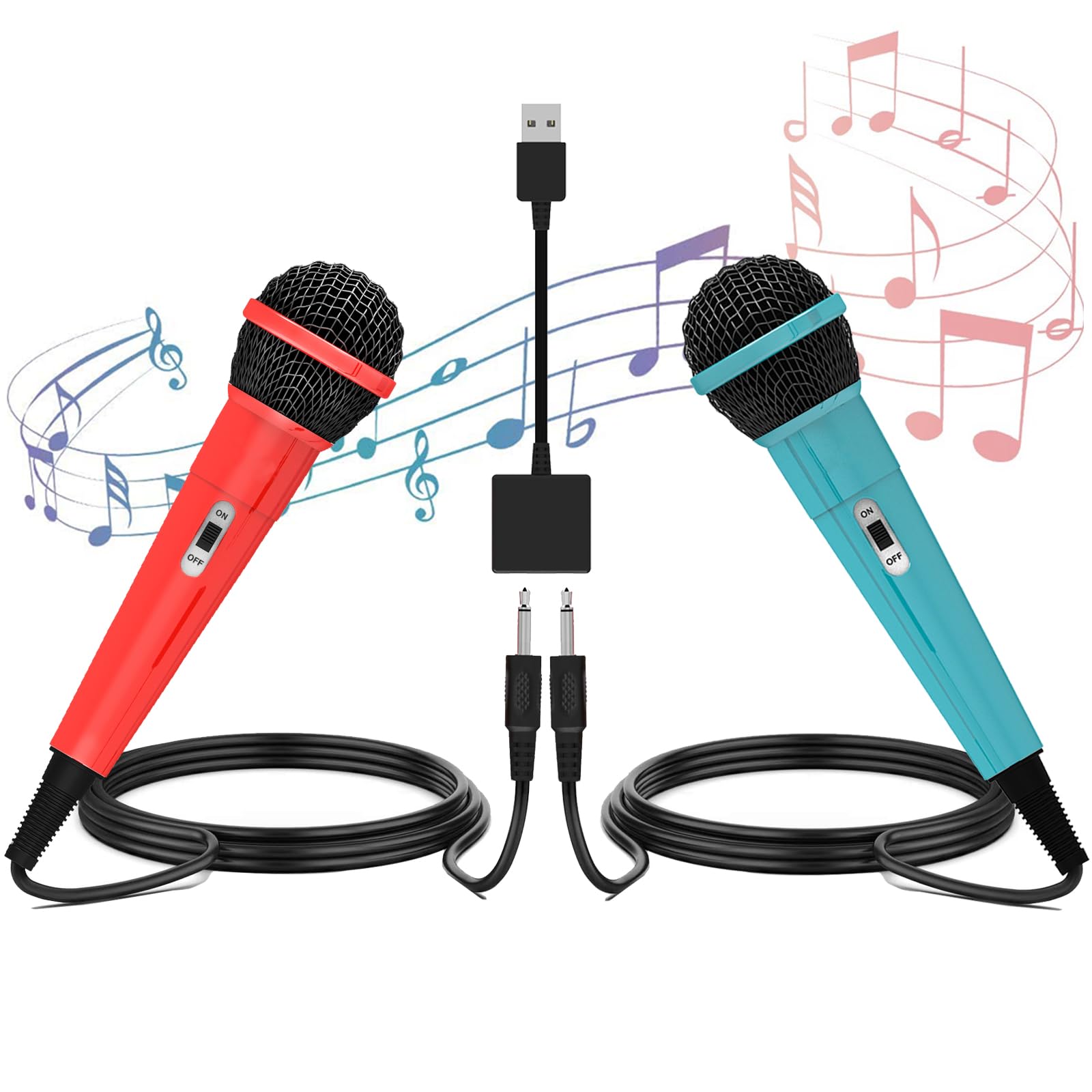【特価セール】ENKE Switch用 カラオケマイク [2025アップグレード版・2本セット] スイッチ用 有線マイク 2.0USB 高集音力 2人同時に歌える 3mの強靭なケーブル 軽量 簡単接続 PS5/PS4/PC/XBOX ONE/Switch2/ニンテンドースイッチの全てシステムに対応(レッド&ブルー) | asaRulu0511