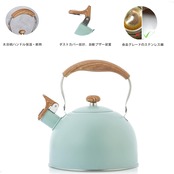 Yanhaoやかん 笛吹きケットル 2.5L 広口 ケトル ステンレス製 木目ハンドル 大容量 IH対応 やかん おしゃれ 調理器具 (ライトグリーン)