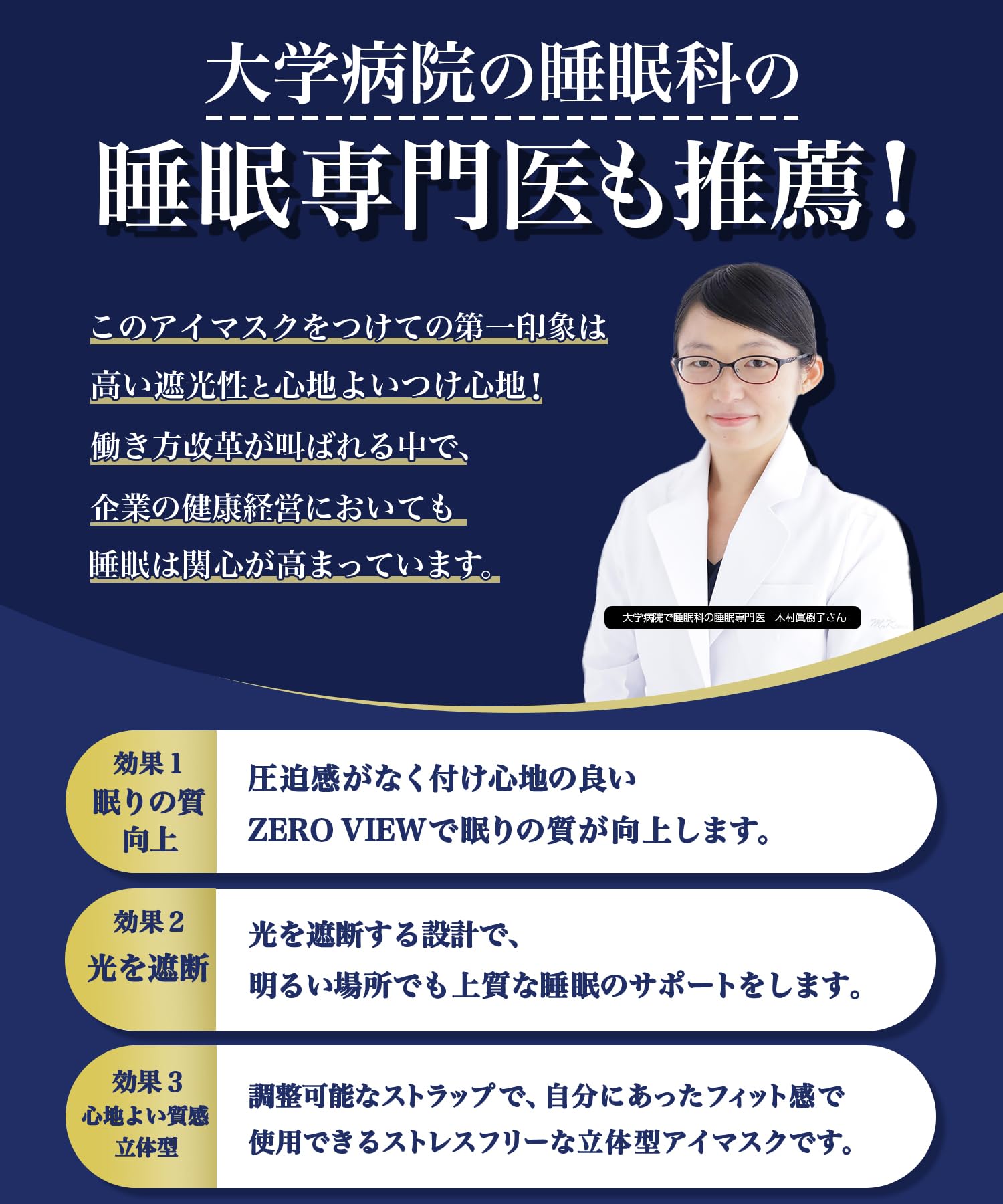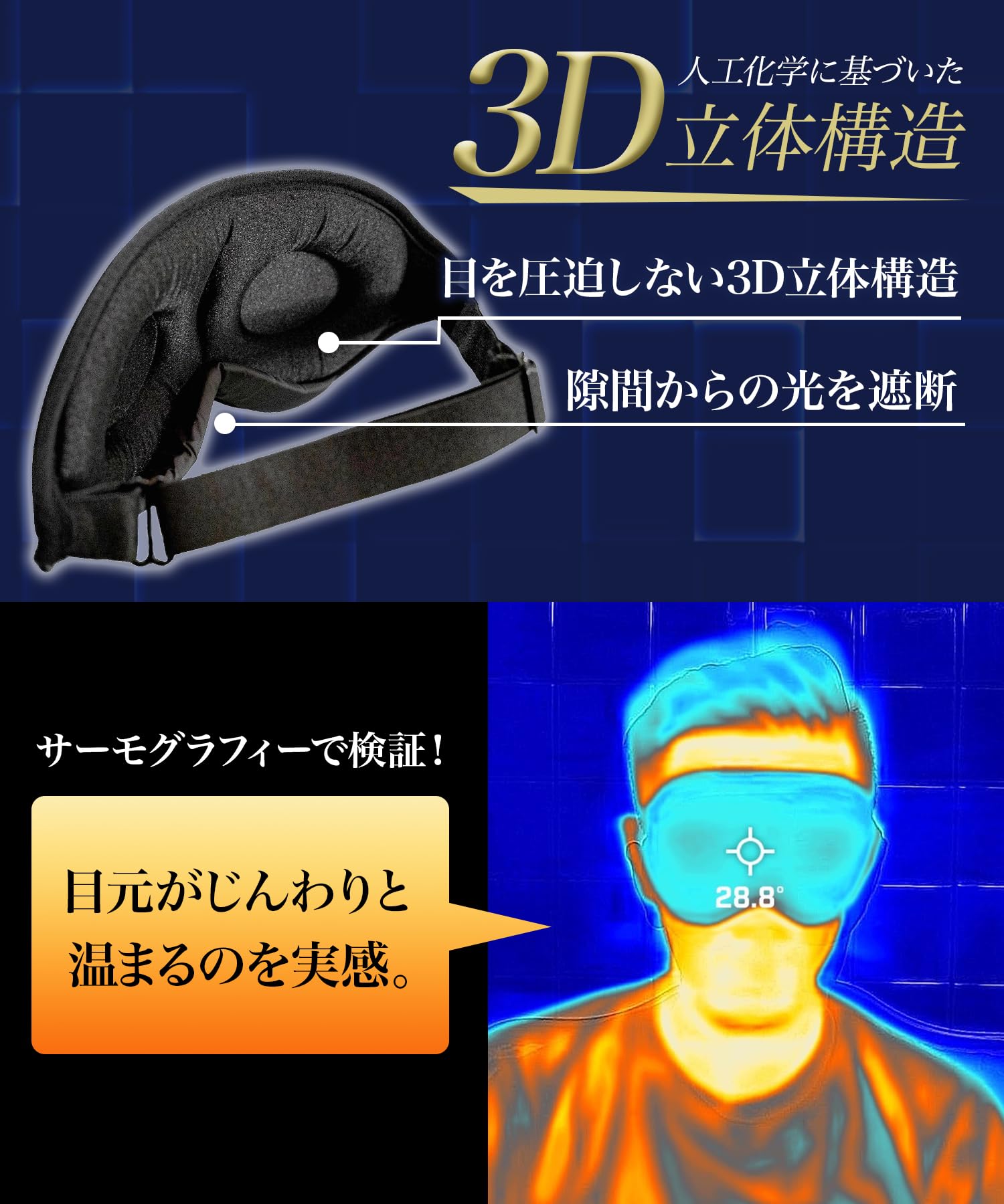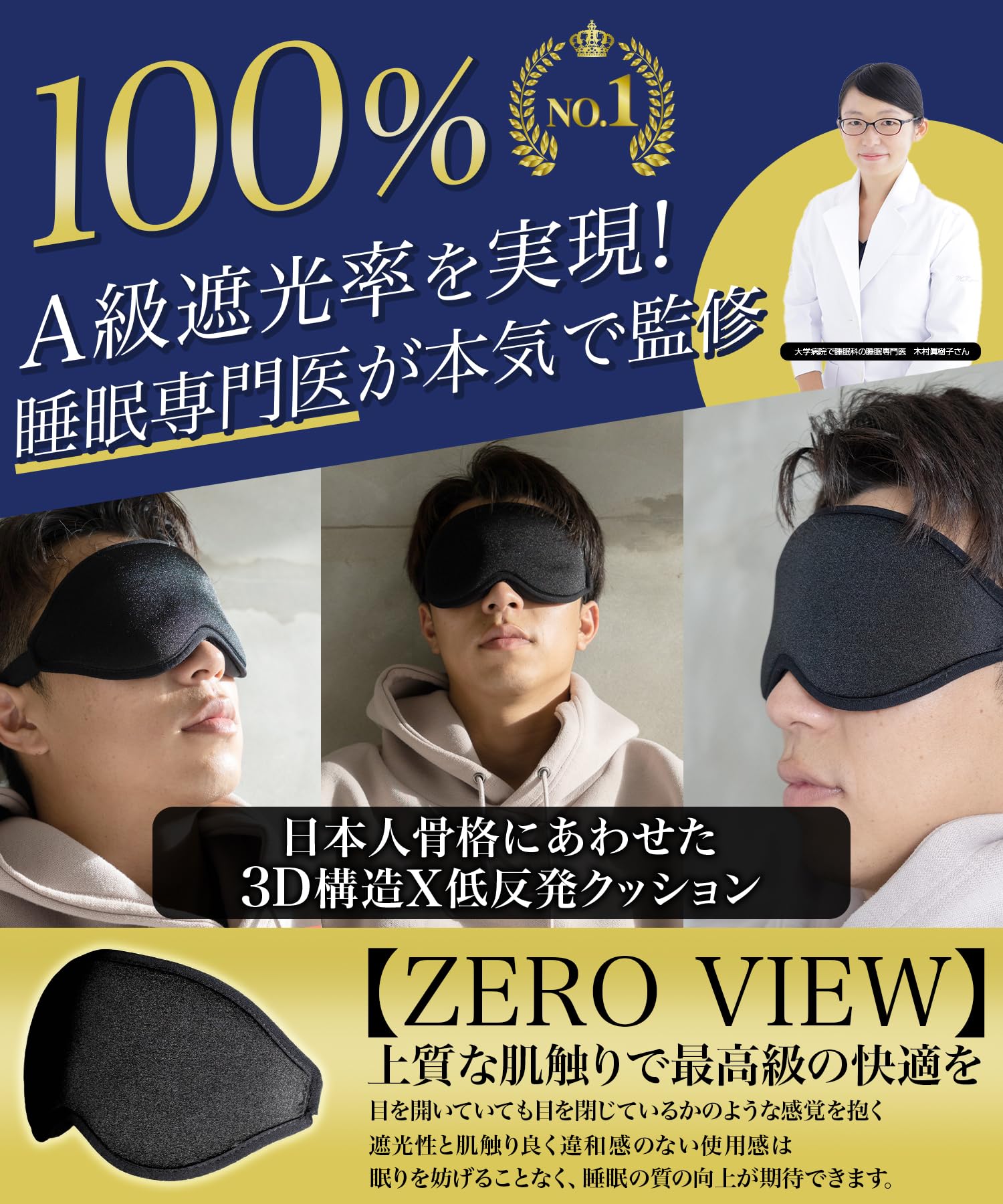【睡眠専門医師と共同開発 アイマスク 遮光率100%】国内第三者検査機関にて100%の遮光性を認定済。完全に光を遮断し⼼地よい快眠・安眠をサポートします。
