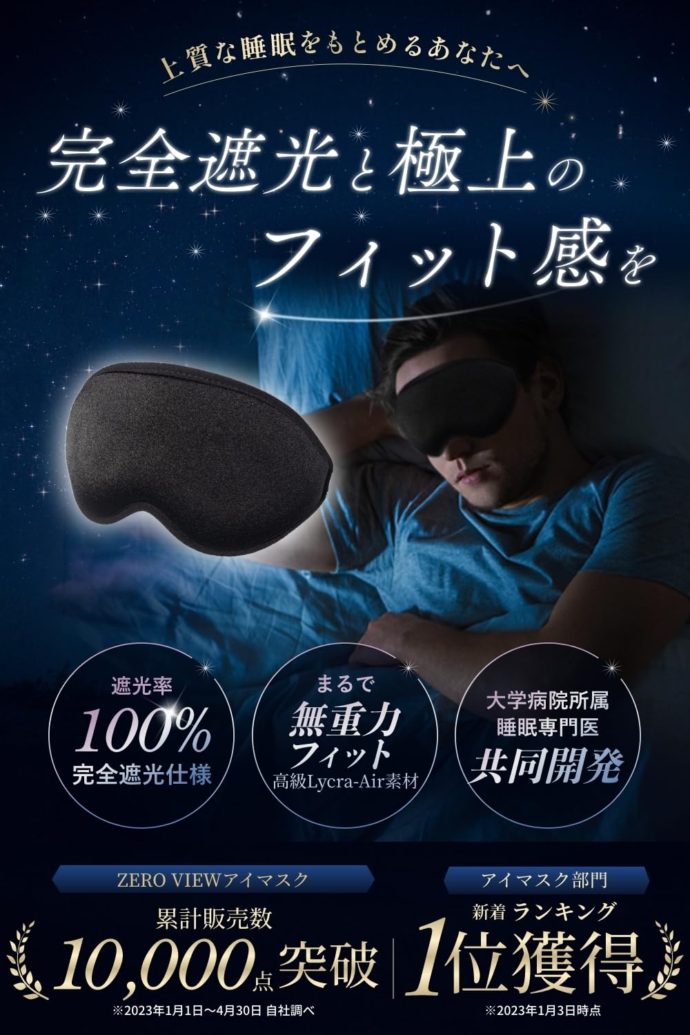 [Flos] 【睡眠専門医師と共同開発 】 アイマスク 遮光率100% 睡眠 旅行用 目隠し 眼罩 アイピロー 持ち運び用袋付き [日本・国際検査機関にて認証済] (ブラック)