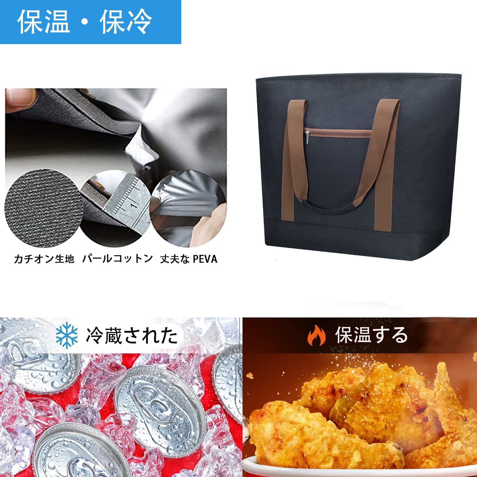 【保温・保冷】保冷保温対応、内部の温度を保ち、肉や魚、飲み物、冷凍食品の温度をキープ。アウトドア、お買い物、様々なシーンで使えます。普段のお買い物のおともに冷蔵商品の持ち運びに便利なクーラーバッグ。コンビニで買った冷凍商品などを入れて、自宅まで新鮮さを保つ。