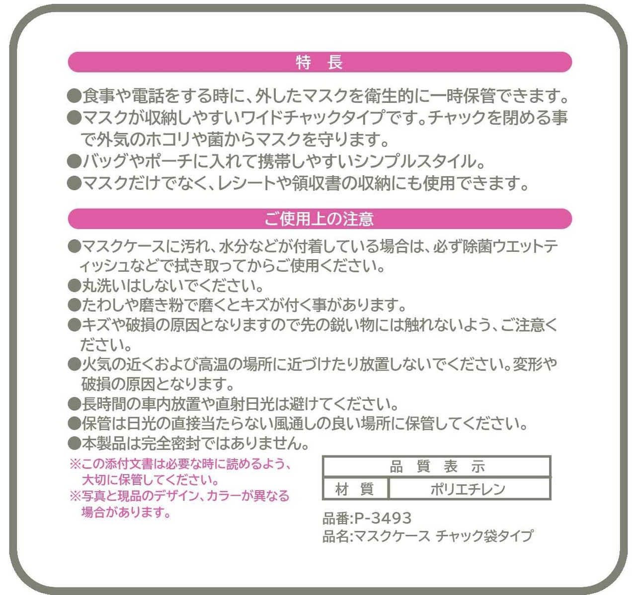 トルネ マスクケース チャック袋タイプ 8枚入