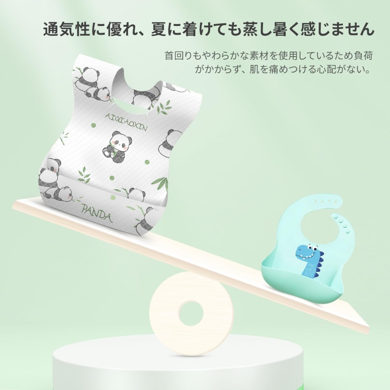 【サイズ調整可能】テープで赤ちゃんの好みに合わせてネックのきつさを調節できるのが特長です。 また、ビブは軽量で首への負担もかかりません。 このデザインは、赤ちゃんがどんな環境でも食べることができます。