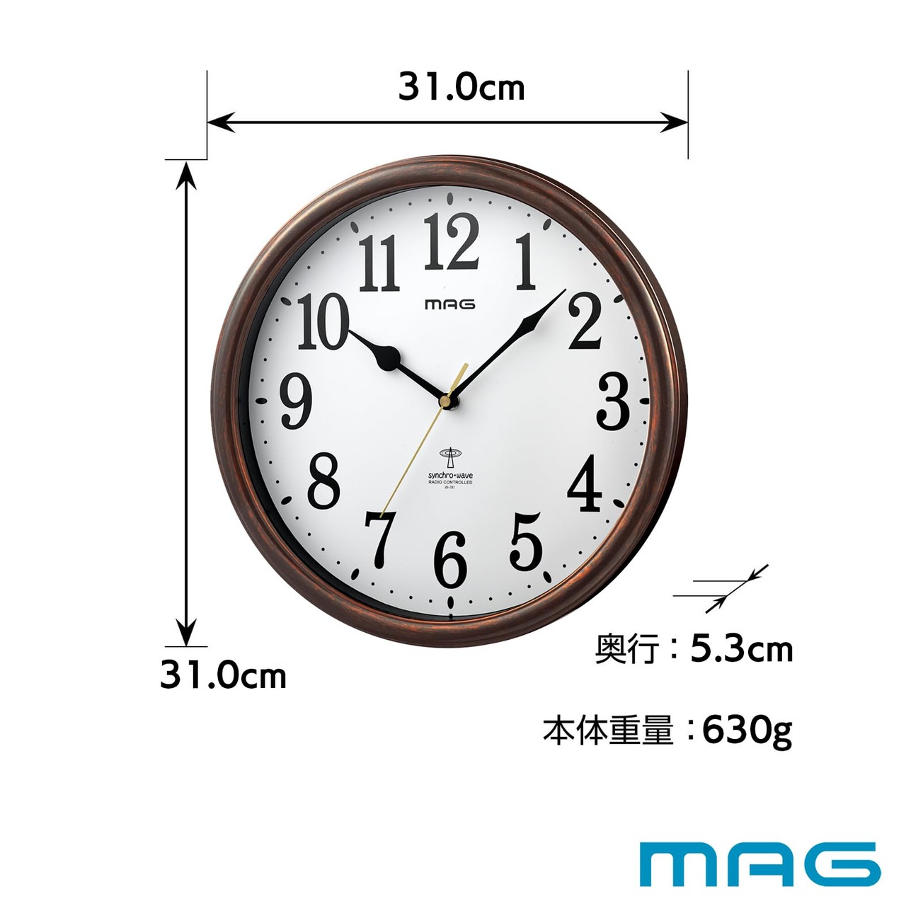 MAG(マグ) 掛け時計 壁掛け時計 電波時計 アナログ クラシック 木目調 和室 直径31.0㎝ 夜間秒針停止 ブラウン 桔梗 W-781 BR-Z ノア精密