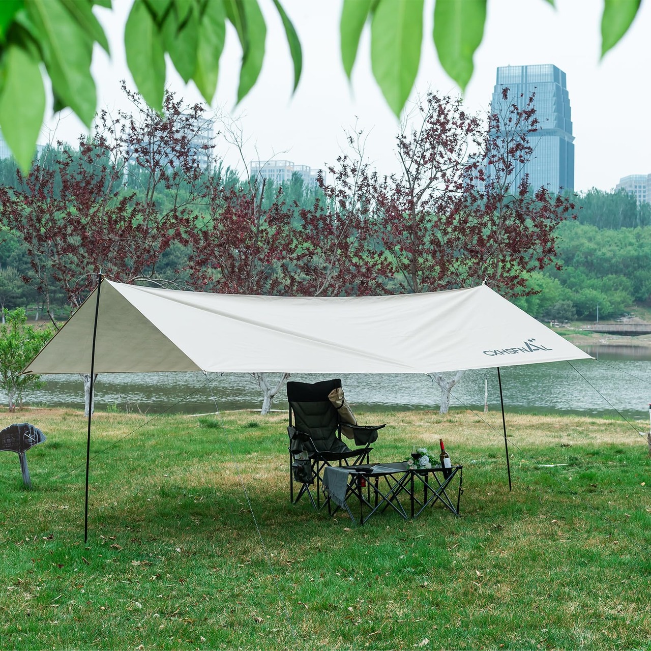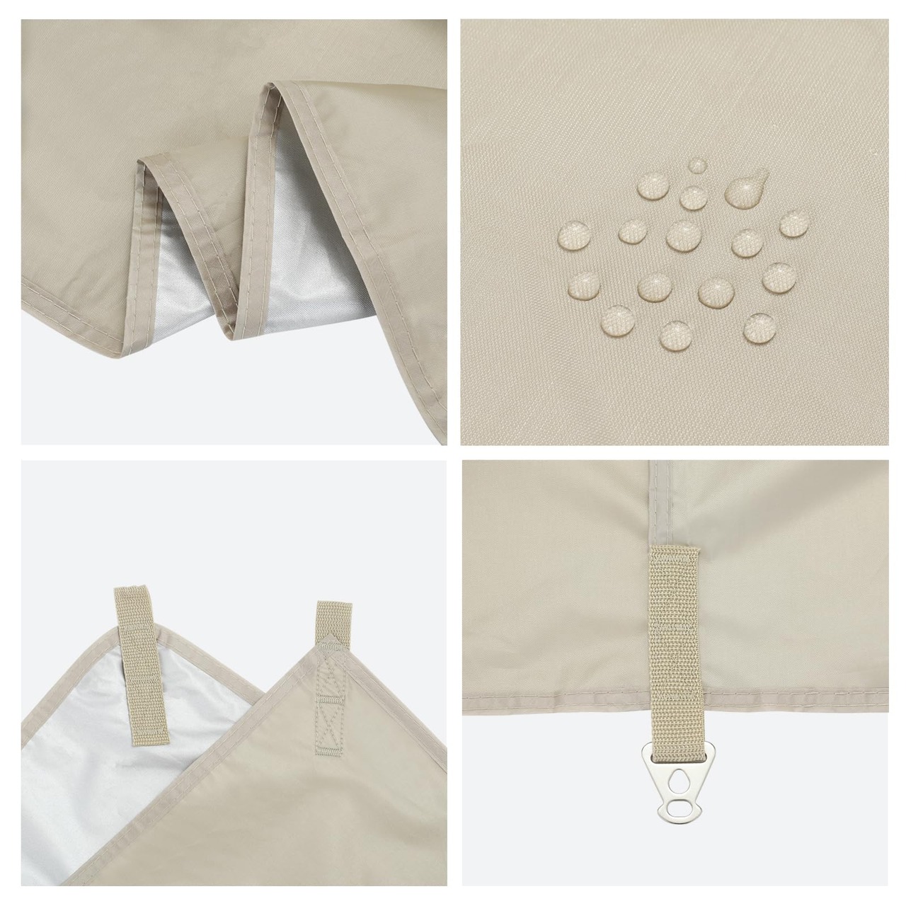 【遮光遮熱と防水仕様】:タープの裏面にはシルバーのコーティングが施されています、遮光遮熱はもちろん、UVカット率は99.9%と高水準、UVの日焼けも心配なし。 210T オックスフォード生地には高耐水加工が施されており、耐水圧はなんと3000mm。 大抵の雨には対応できます!アウトドア、レジャーなど屋外で使用するには最適。