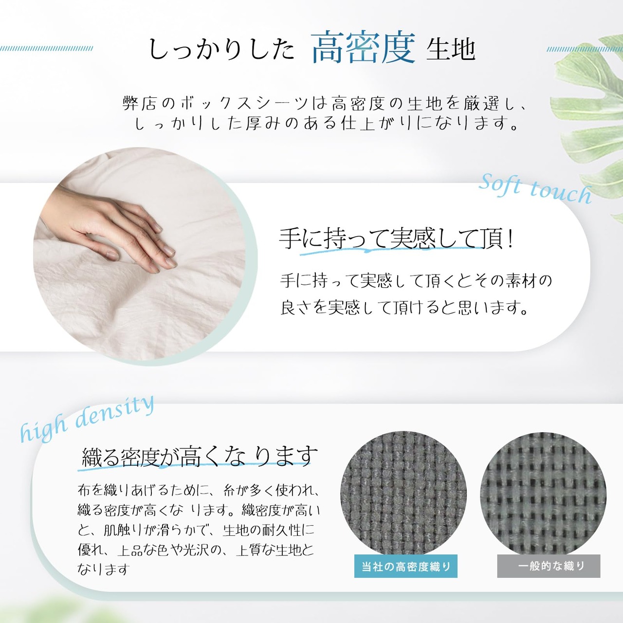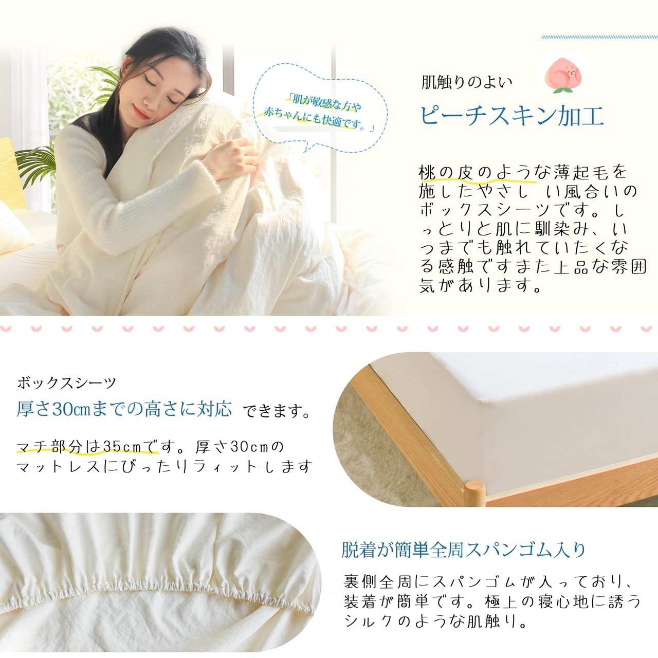 【洗いざらし+極柔な肌触り】:ボックスシーツの生地を何度も洗って自然な風合いがでて更にピーチスキン加工して最初から肌になじむように仕上げました。洗濯ごとにもっと柔らかくなり、毛玉やほつれができにくく、静電気も少ないので、耐用性がよい長く愛用できます。