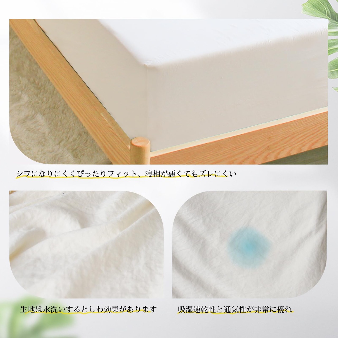【ズレ防止全周ゴム】シーツの裏面は全周ゴム仕様になっているので、すっぽり被せるだけで着脱簡単です!寝相を気にすることなく朝までぐっすり!【オールシーズン向け】暑い季節は汗を吸いやすく、寒い季節は保温性に優れています。また通気性もよい、汗をかいても素早く湿気を吸い取り、発散してくれるので、いつでもサラサラとしています。一年を通じてお使いいただけます。