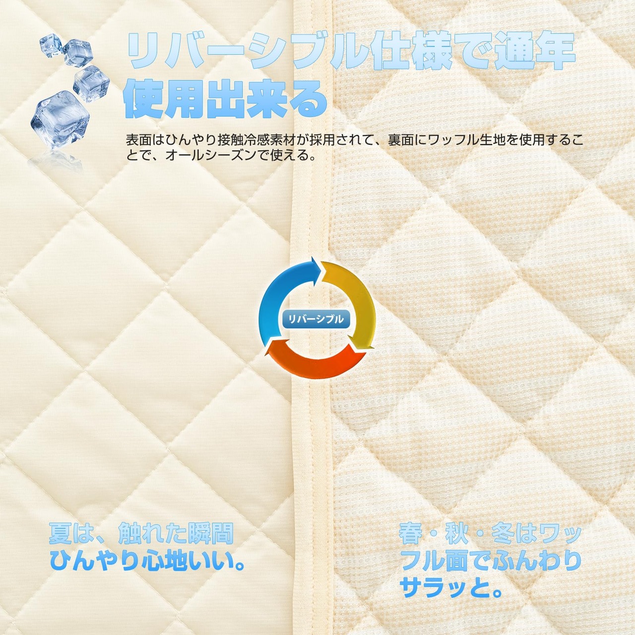 【リバーシブル】片面は冷感素材、もう片面はやさしい肌触りのパイル生地。気温や気分に合わせて使い分けができる2WAY仕様で、長い季節にわたって活躍します。1枚で何通りもの快適さを楽しめます。