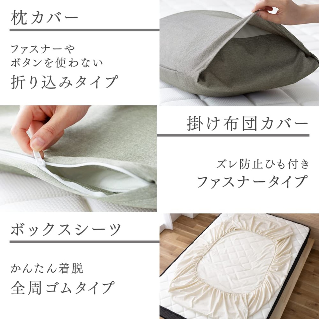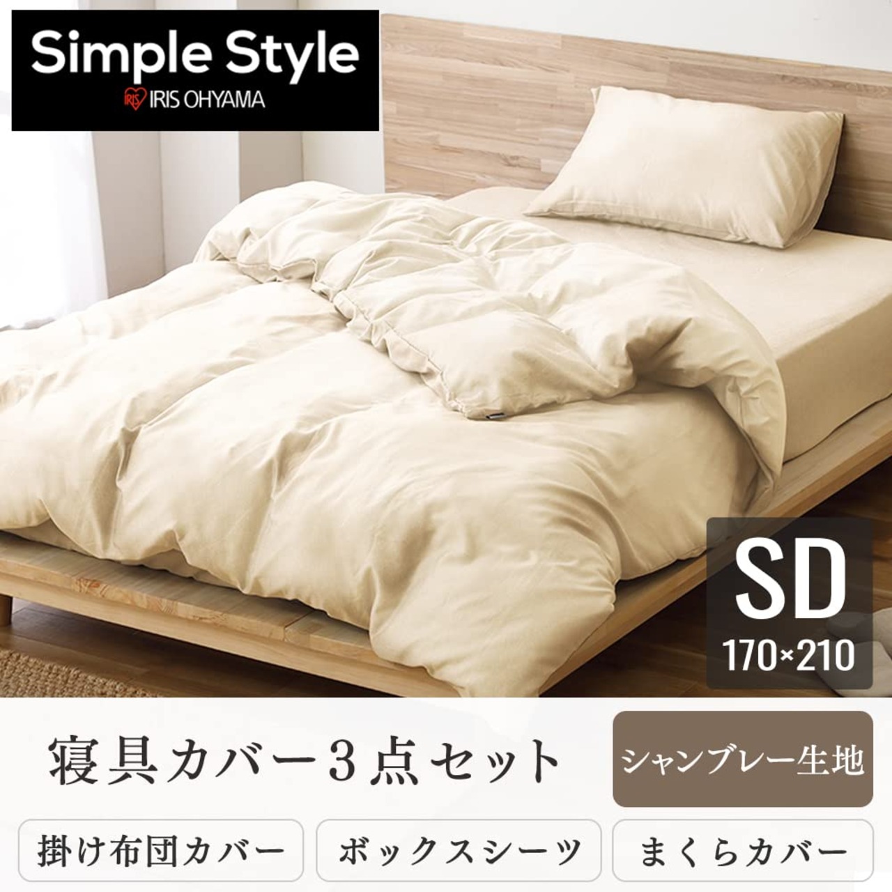 【2022最新】【寝具カバー3点セット セミダブル】 アイリスオーヤマ 速乾シャンブレー生地 掛け布団カバー + ボックスシーツ + 枕カバー 43×63cm ライトグレー