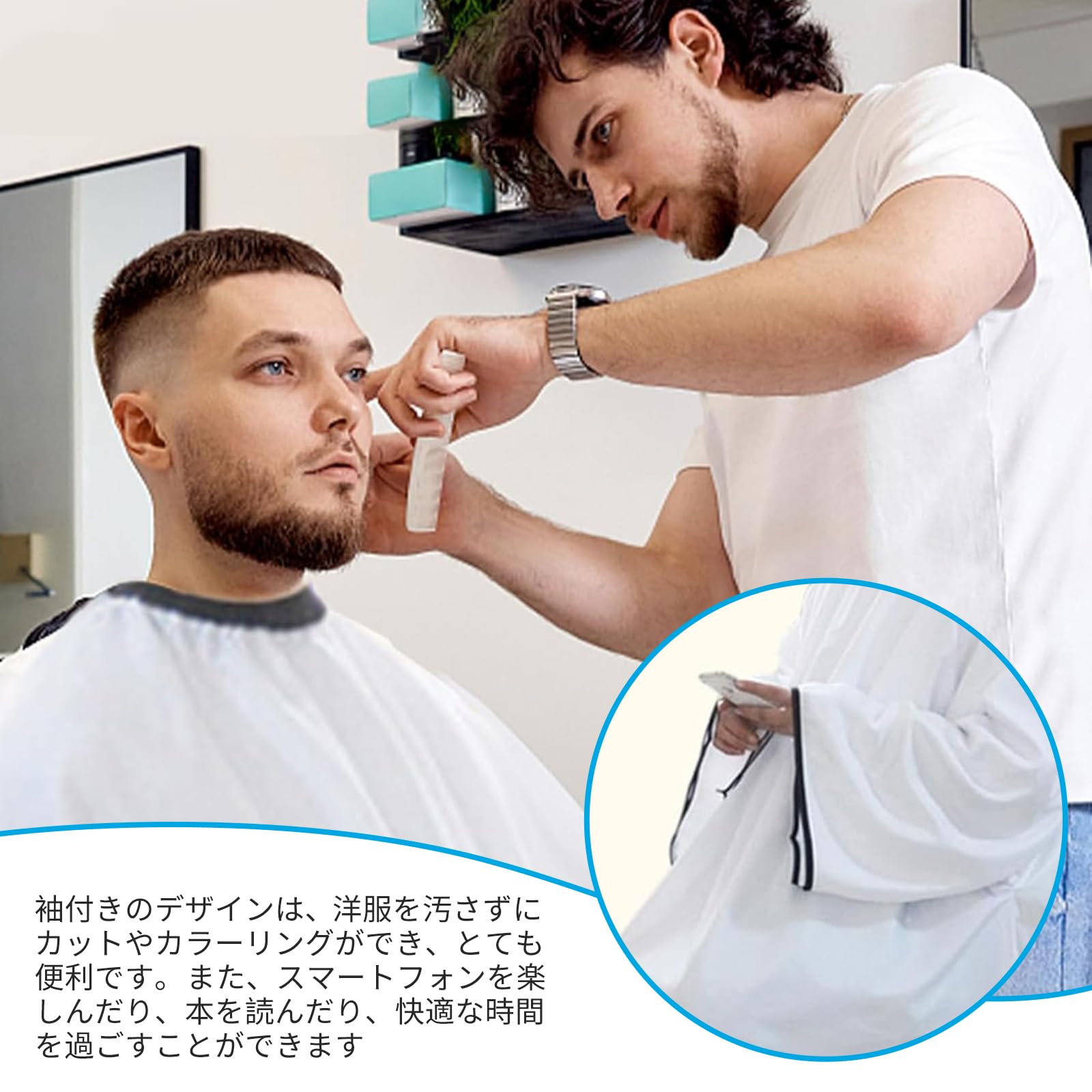 [雲見] 散髪用ケープ ヘアーエプロン 延長された袖 静電気防止 髪にくっつかない 防水 調節可能 大きめ ヘアカットケープ カットクロス 毛染め 美容エプロン 散髪用 毛染め 大人用 子供用