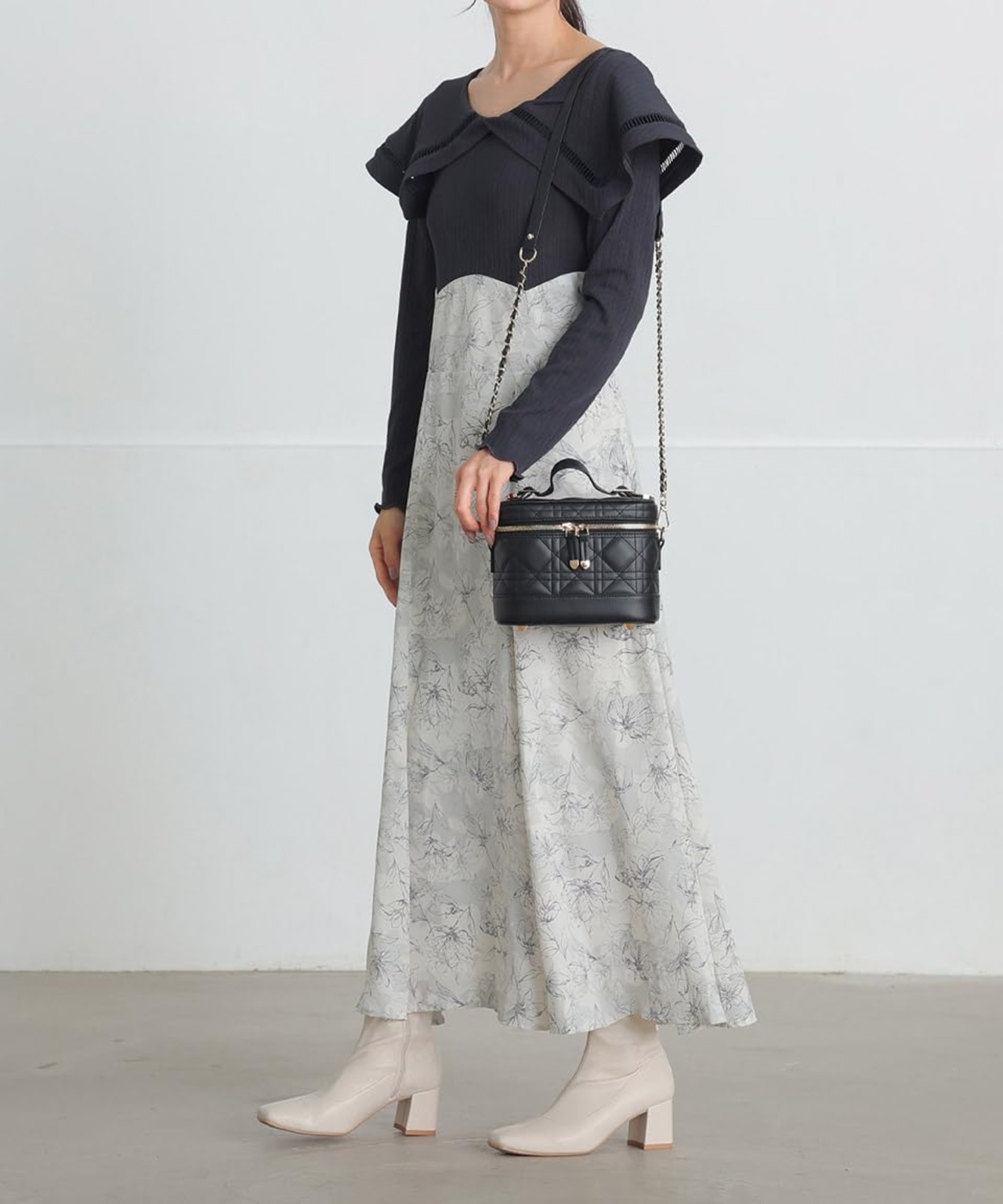 ・キルティング素材が可愛いバニティバッグ。・内側にはオープンポケットが2つ付いており小物も迷子になりません!・開閉はファスナーでぐるっと開くことができるので、出し入れしやすい点もポイント。・ショルダー紐は2段階に調整、取り外しが可能な3WAY仕様!・持つだけでこなれ感のあるスタイルが完成します。・フェミニンやカジュアルなどスタイル問わず合わせていただけます。