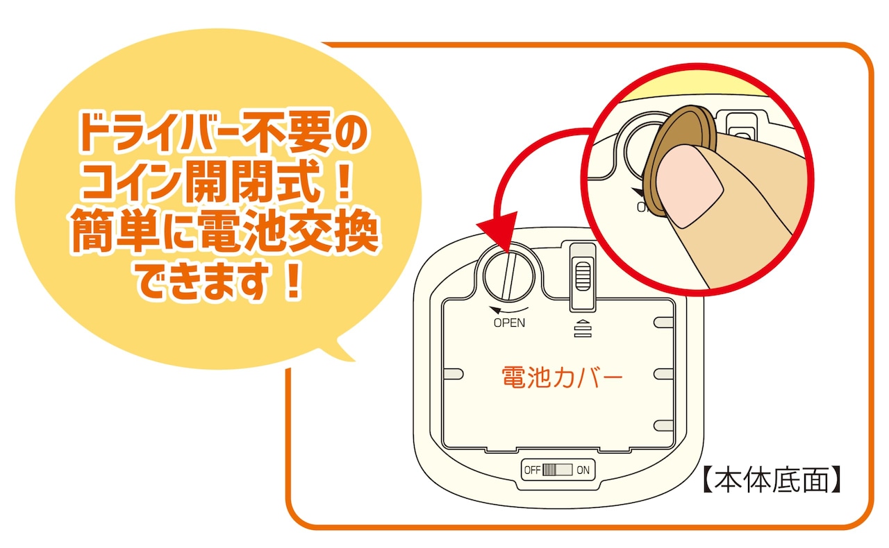 電池BOX開閉時コイン使用 1回の電池交換で約3000回作動(連続状態で約8時間)※ご使用になる環境によって異なります。