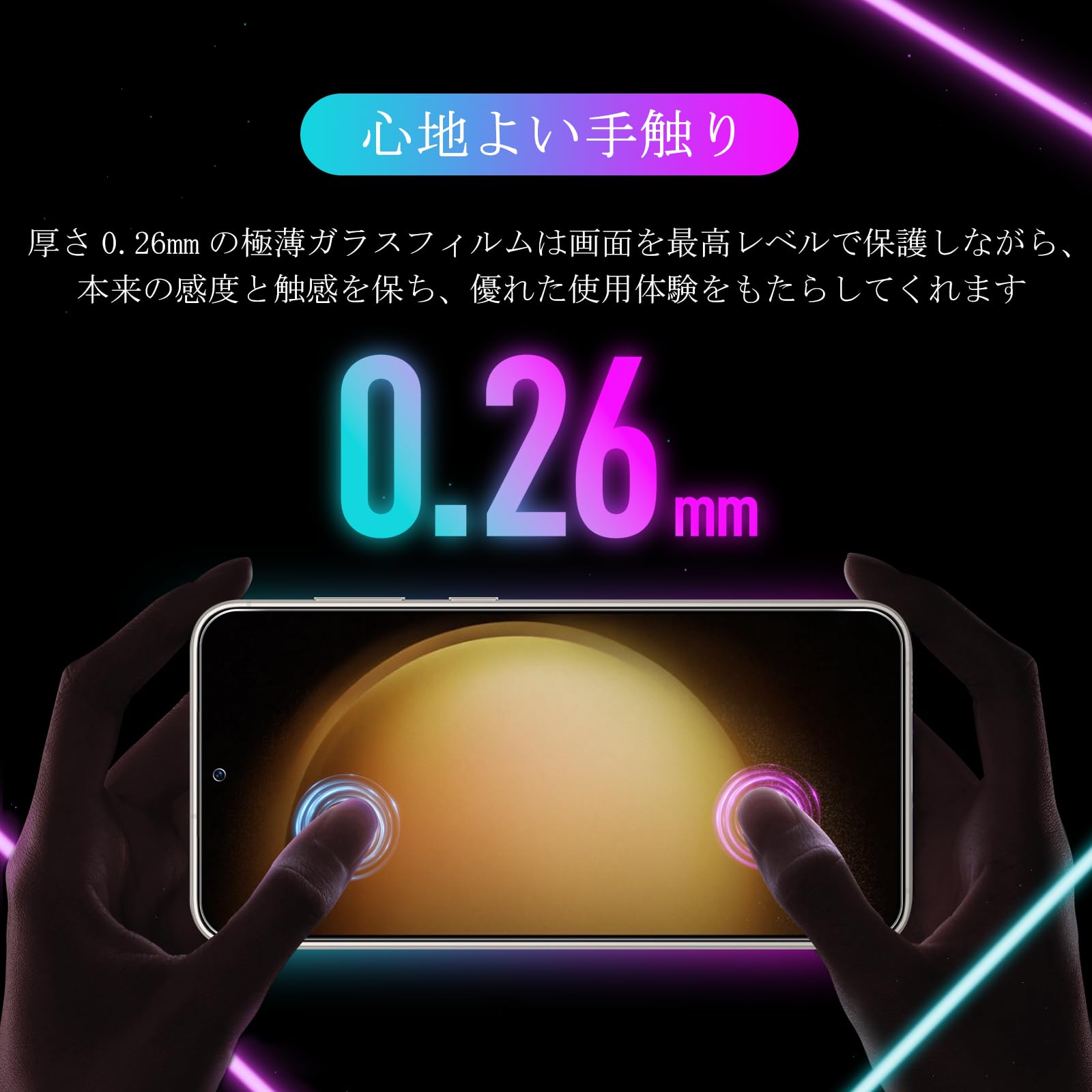 【極薄・クリア・感度が高い】ギャラクシーs23 保護フィルムは、通常の液晶保護フィルムよりも高級なガラスを採用して作られており、高精細で透明な保護フィルムが最高な解像度があることを確保し、透明度も高くて93%に達し、高透明度で高精細な見る体験を現実しました。そして厚さが0.26mmの極薄強化ガラススクリーンプロテクターは最高レベルで画面保護を実施しながら、本来の感度と触感を保持して、優れた使用体験をもたらします。