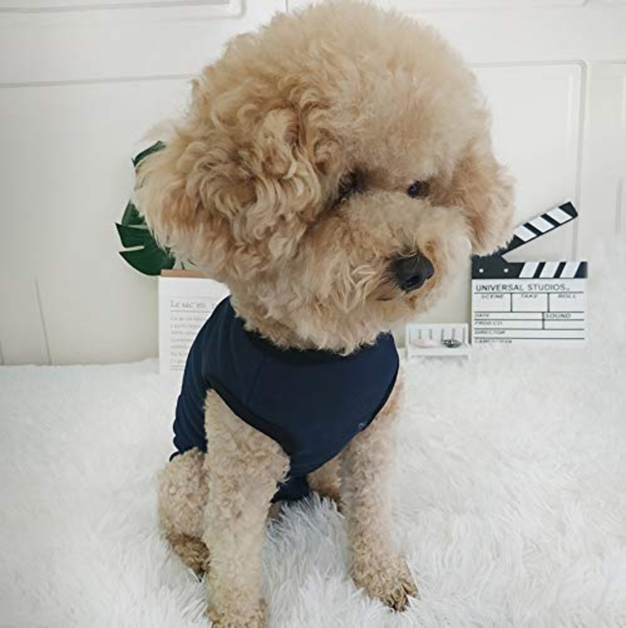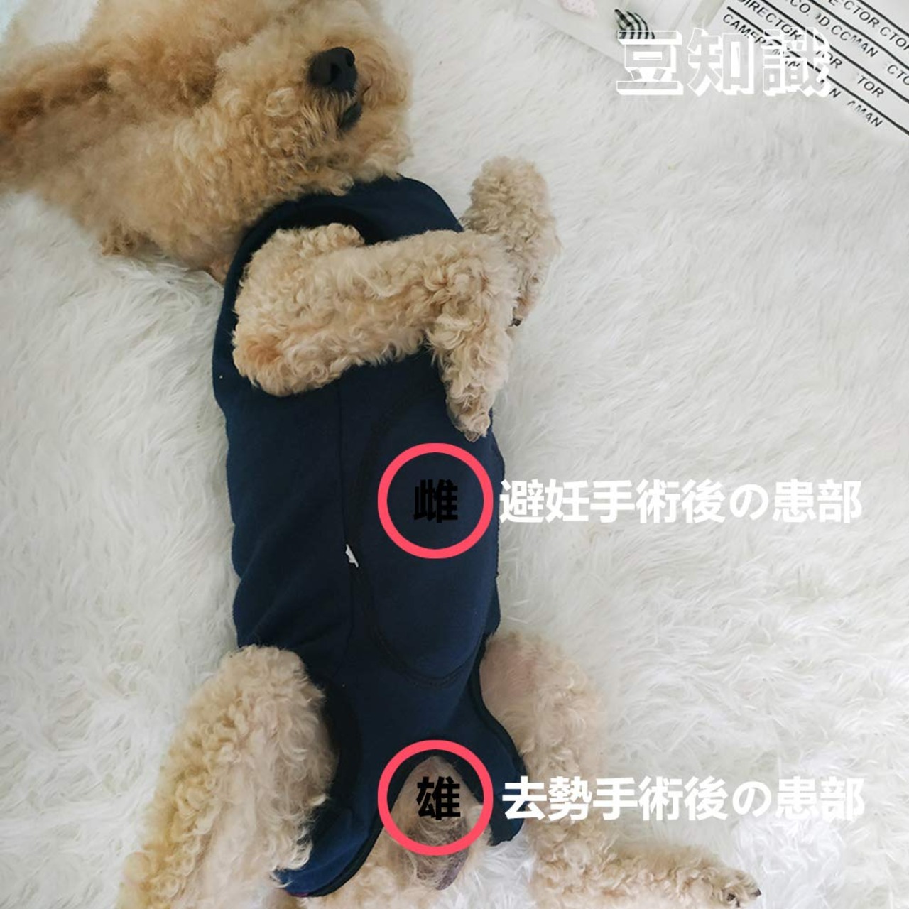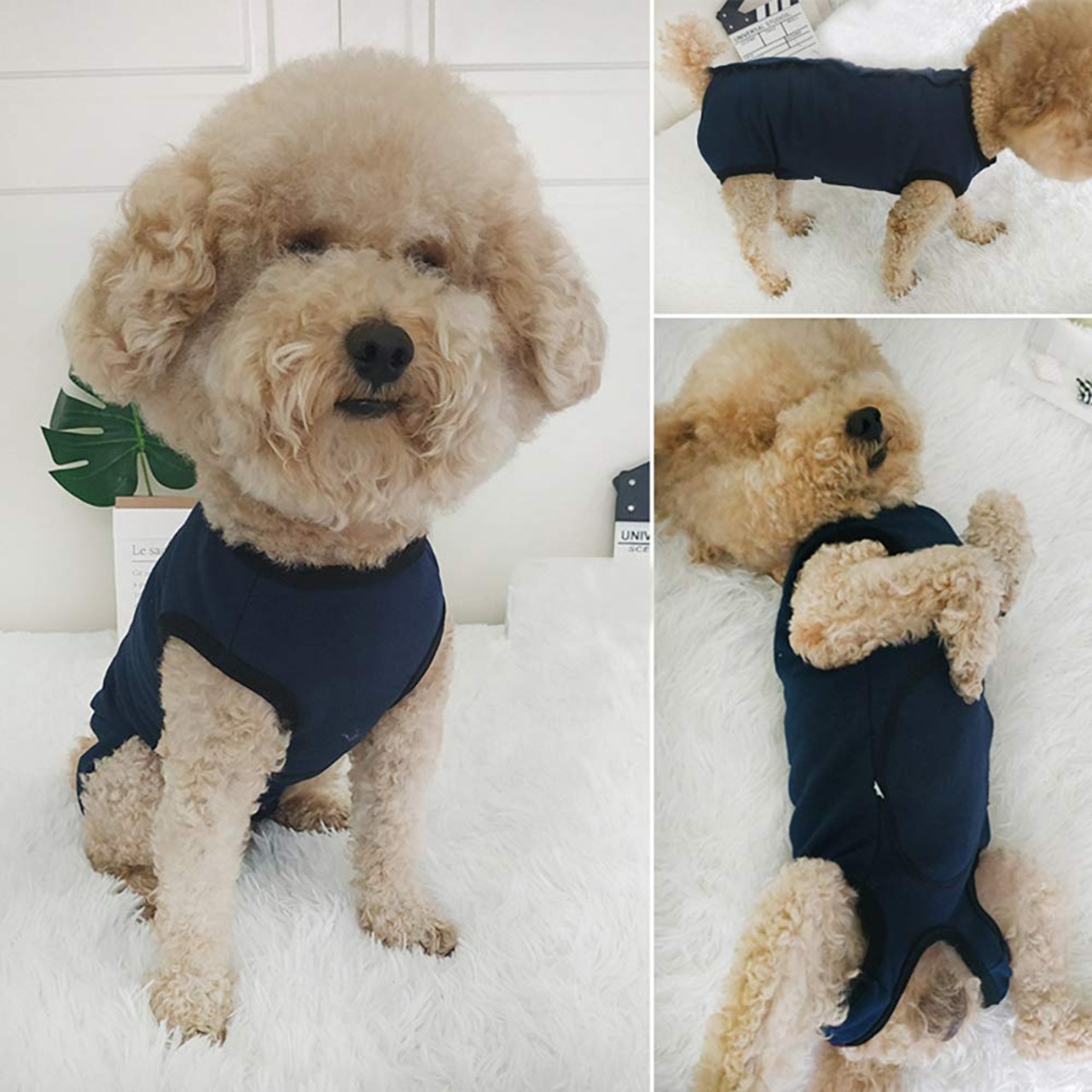 KUVEELA PET 術後服 犬 服 犬用品 術後ウェア 術後カバー服 エリザベスカラーの代わる 保護服 雄 雌兼用 避妊 離乳 傷口保護 皮膚病 通気 夏用 小型犬 中型犬(SS、ダークブルー)
