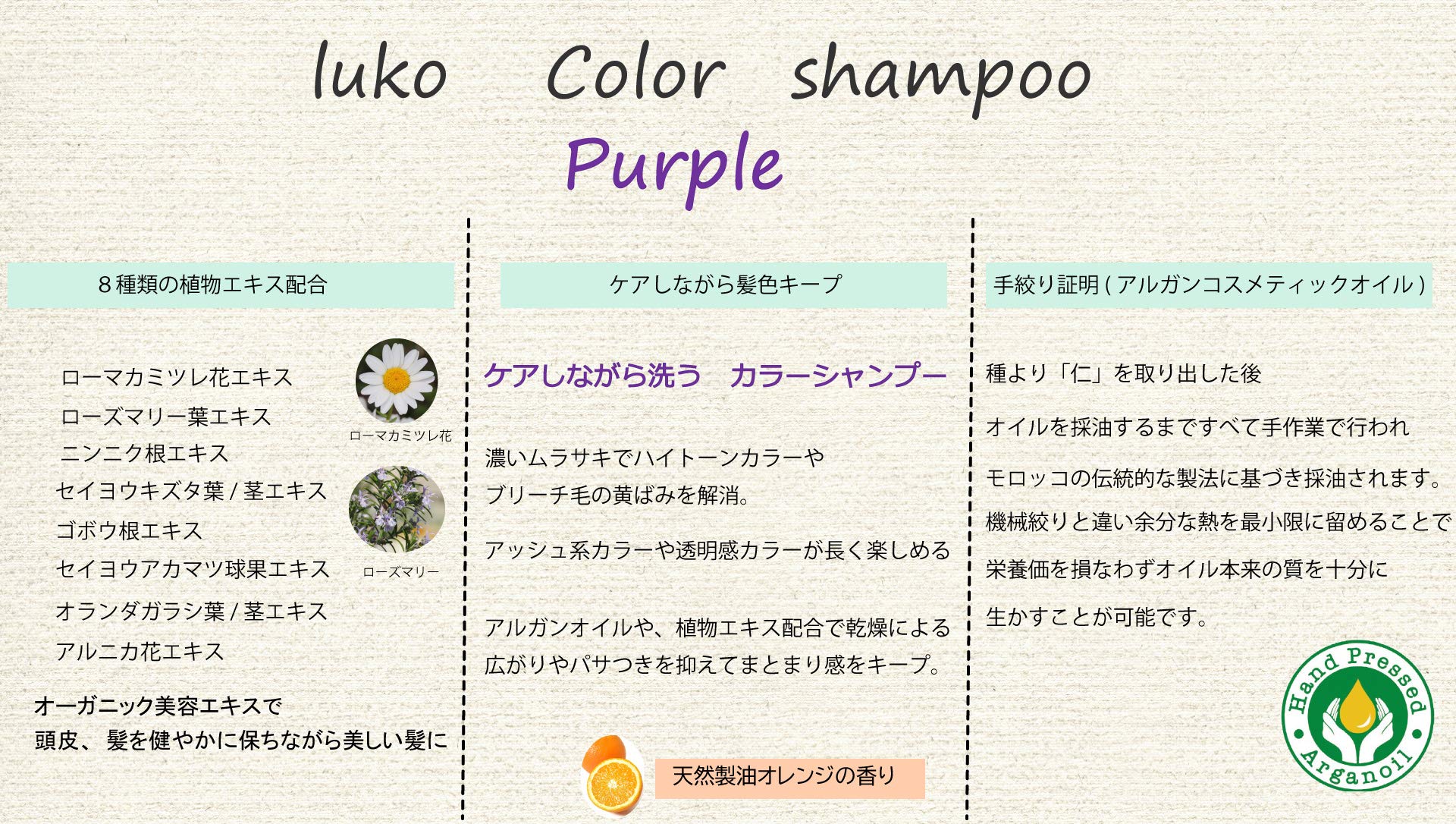 植物エキス配合 ルコ カラーシャンプー ムラサキ purple 300ml オーガニック ムラシャン 紫シャンプー