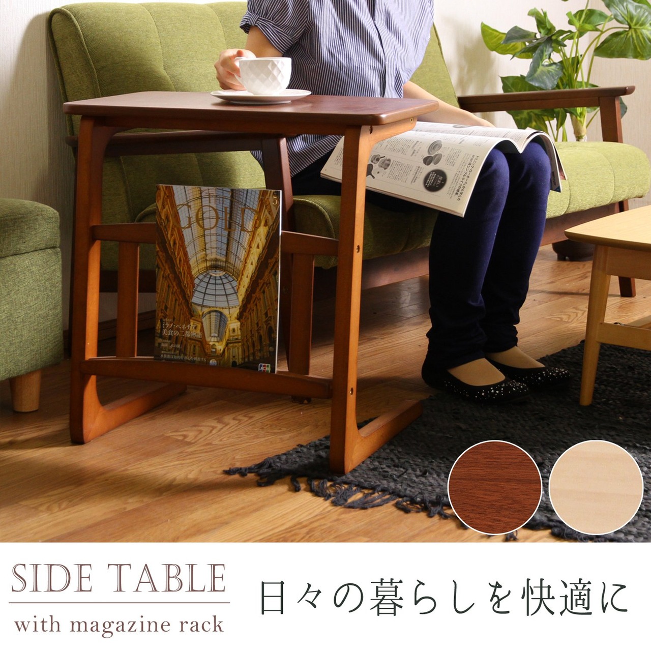 不二貿易 サイドテーブル 幅55cm ナチュラル マガジンラック付き ルレーヴェ 10632