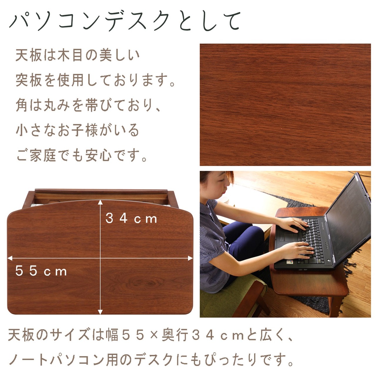 素材・材質:天板/オーク突板、脚部/ラバーウッド
