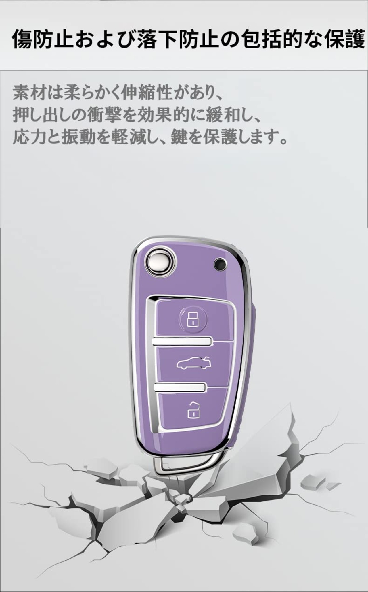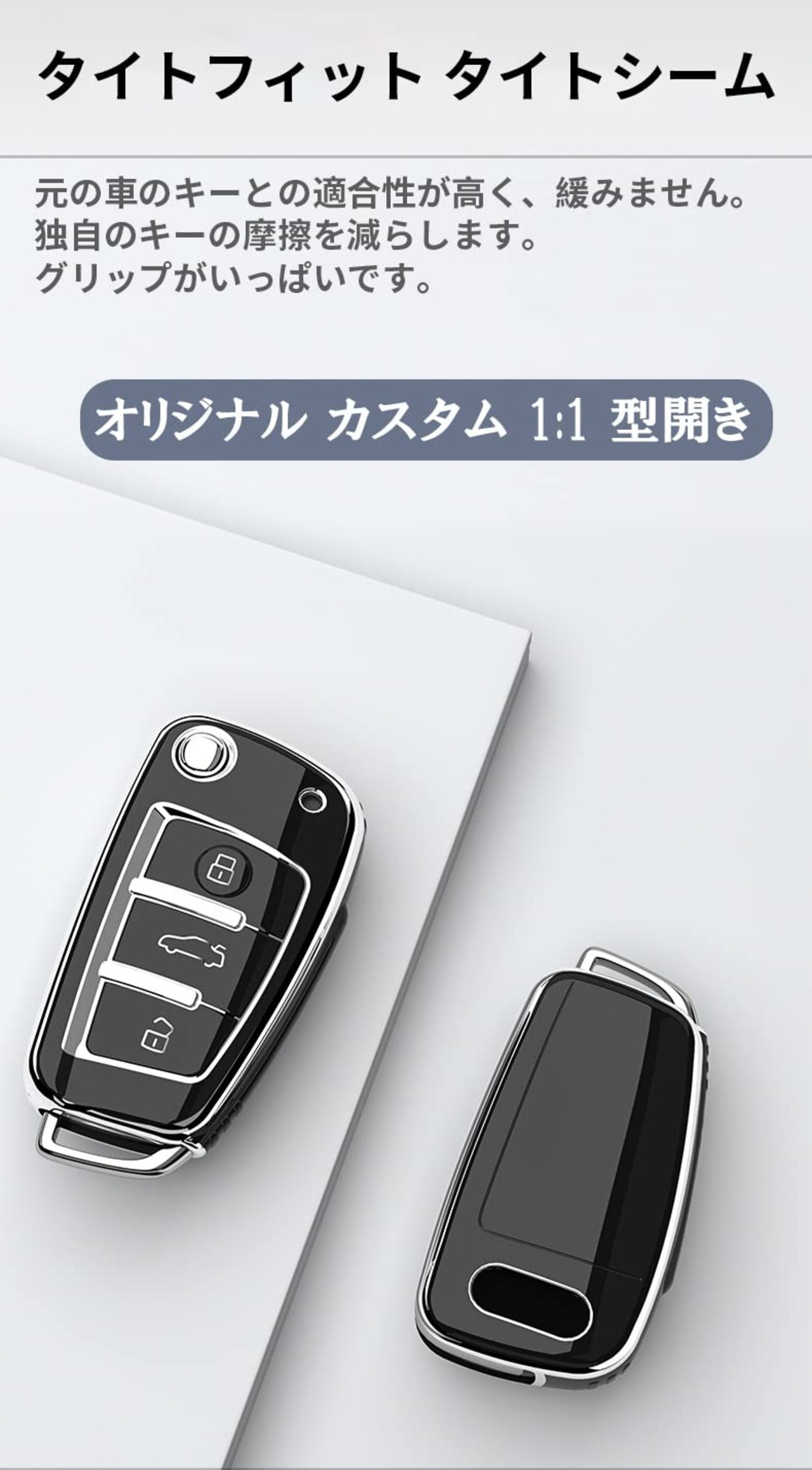 【専用設計でジャストフィット】各ボタンにフィットするよう設計され、こだわりの専用キーケースです。裏側の本体カバーの溝に、スマートキーの位置を合わせます。前後2枚のカバーを被せるだけで簡単に装着できます。スペシャルなTPUシリコン材質を生かして指紋防止対応できます。