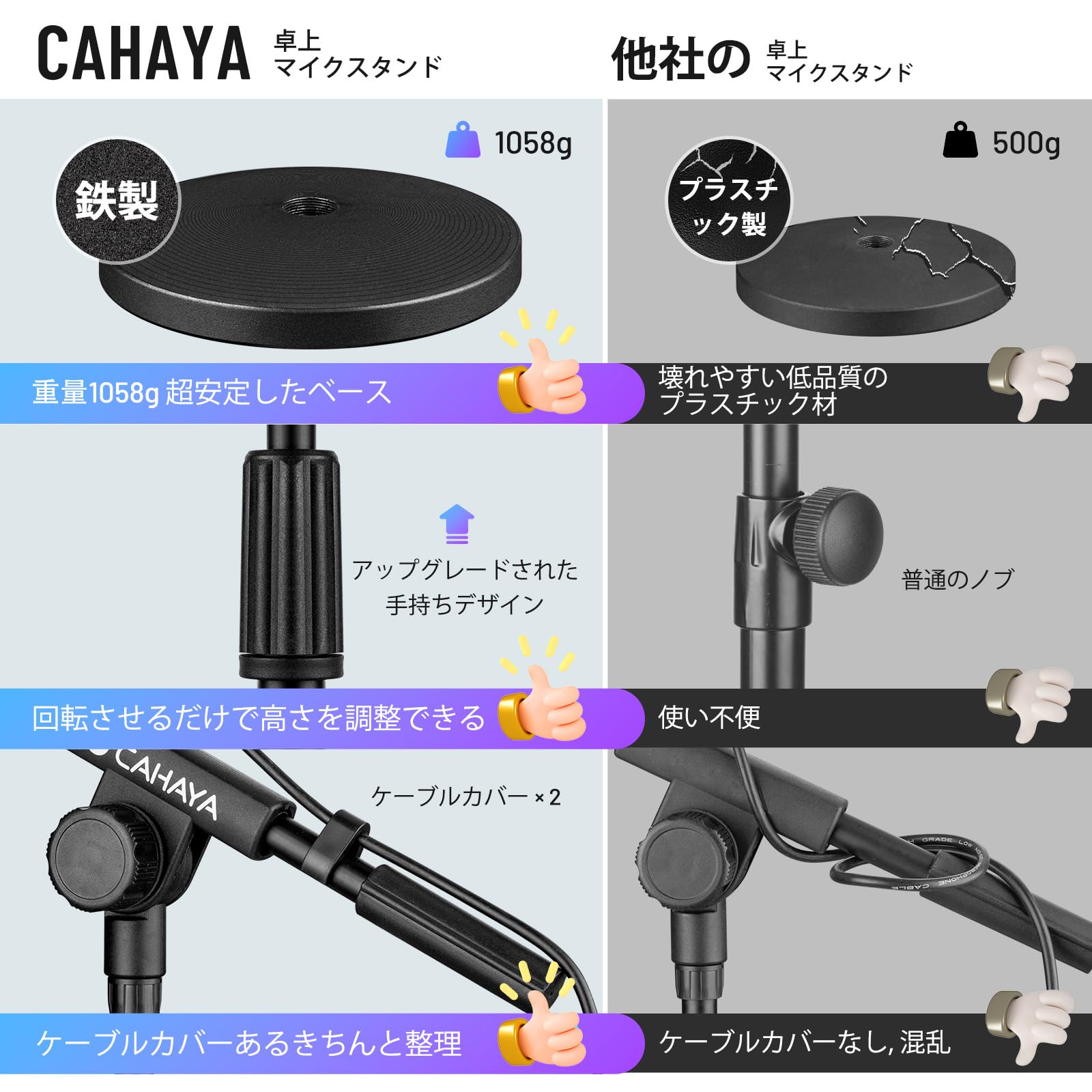【新春セール】CAHAYA マイクスタンド 卓上 ストレート ブーム 最新2Way仕様 2×クリップ 2×ケーブルカバー付き 鉄製1058g安定なベース 本体1530g 360°高さ調節可能 直立 卓上スタンド マイクホルダー マイクロフォン スタンド ストレート 会議 講習会 ライブ スピーチ 放送 カラオケ レコーディング コンデンサー マイクスタンド ブラック CY0360