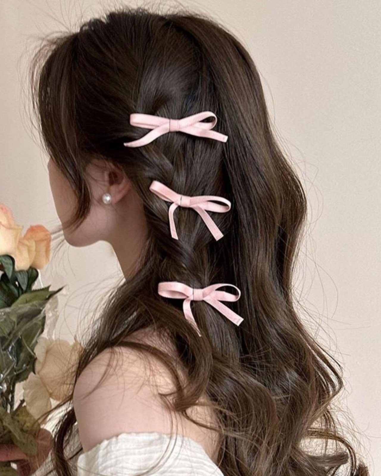 Fesanla リボン ヘアアクセ 小さめ 蝶結びミニ ヘアクリップ 2個セット 髪飾り 髪留め 可愛い ヘアアクセサリー 女の子 誕生日 成人式 結婚式 (ワインレッド)