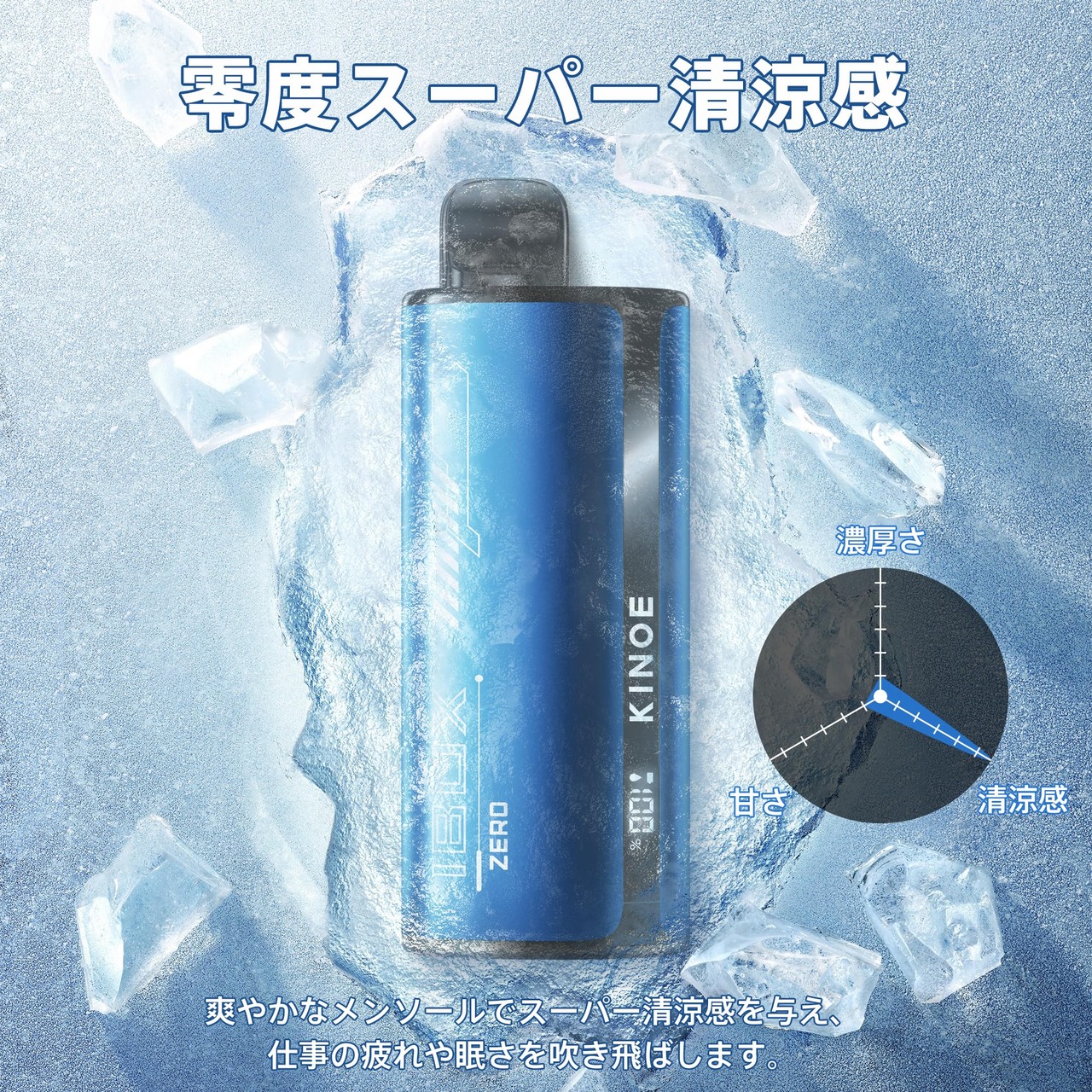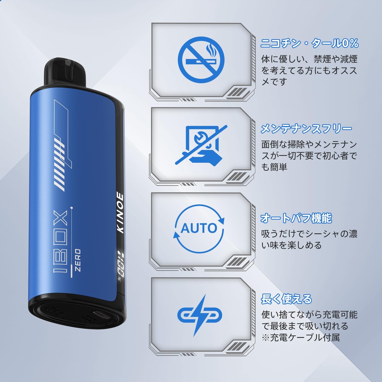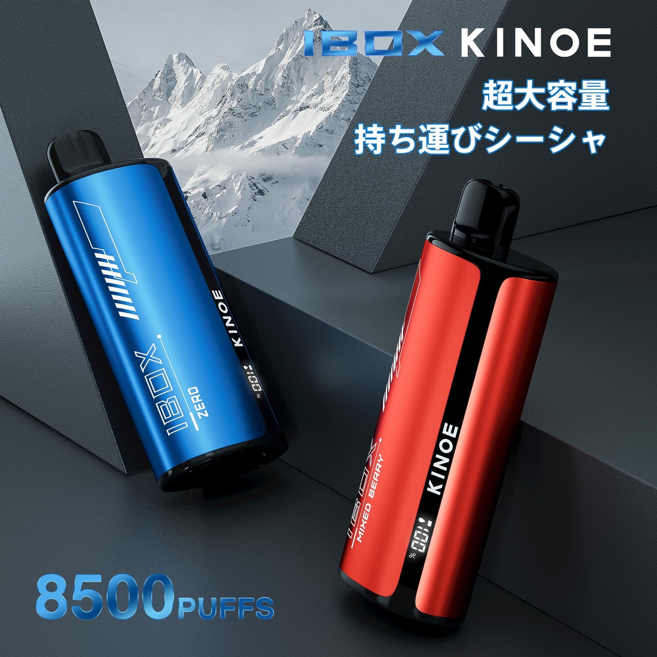 電子タバコ VAPE ベイプ シーシャ 8500回吸引可能 ゼロ スーパー清涼感 爆煙 大容量 使い捨て LEDモニター搭載 持ち運び 特製リキッド 水蒸気たばこ 禁煙サポート ニコチンなし KINOE IBOX