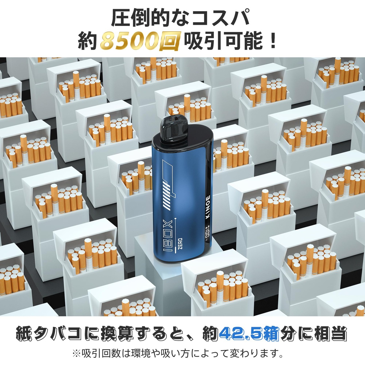【コスパ抜群の使用回数】超コスパ!1個約8500回吸引できる大容量電子タバコ、従来のたばこ42.5箱分相当。使い捨てながら充電は繰り返し可能!最後までフレーバーの風味を最大限お楽しみいただる。(※吸引回数は環境や吸い方によって変わります。)