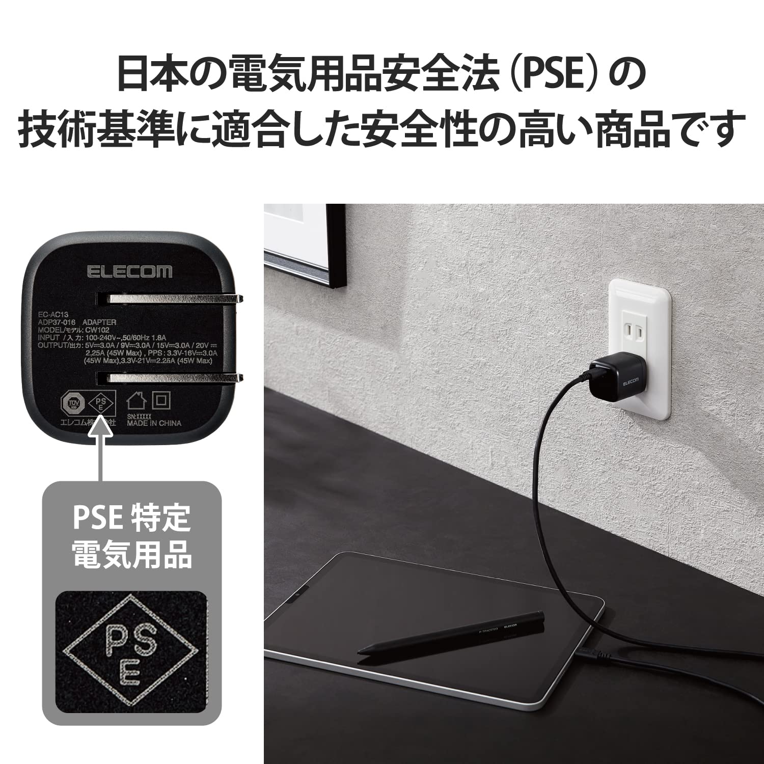【特価セール】エレコム 急速充電器 Type-C USB PD対応 45W USB-C×1 小型 軽量 折りたたみ式プラグ 【iPhone16 15 iPad Macbook Air Surface 等対応】 ブラック EC-AC13BK | asaRulu0511
